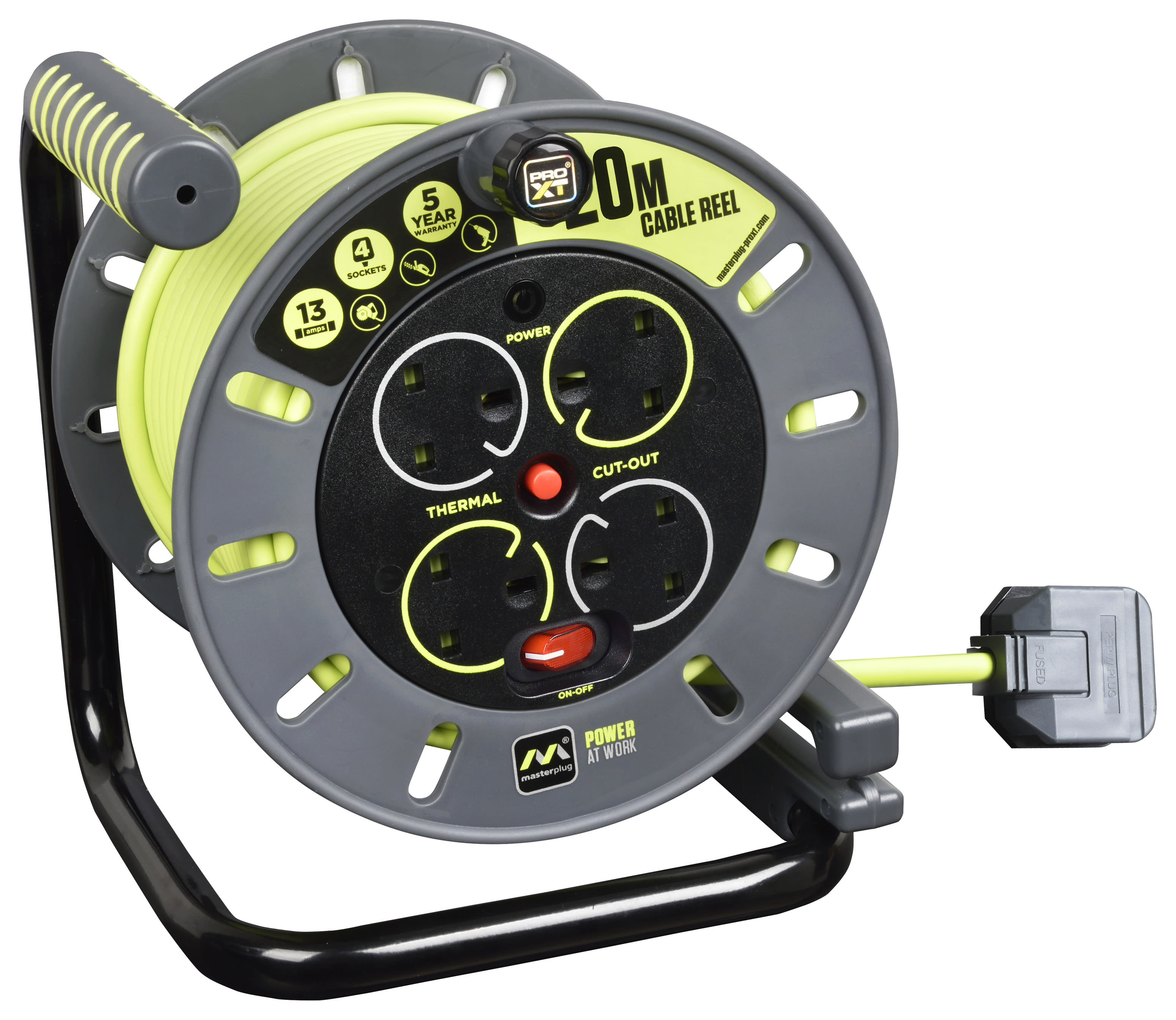 Masterplug 13A Pro-XT 4 Socket Open Reel High Visibility Cable - 20m