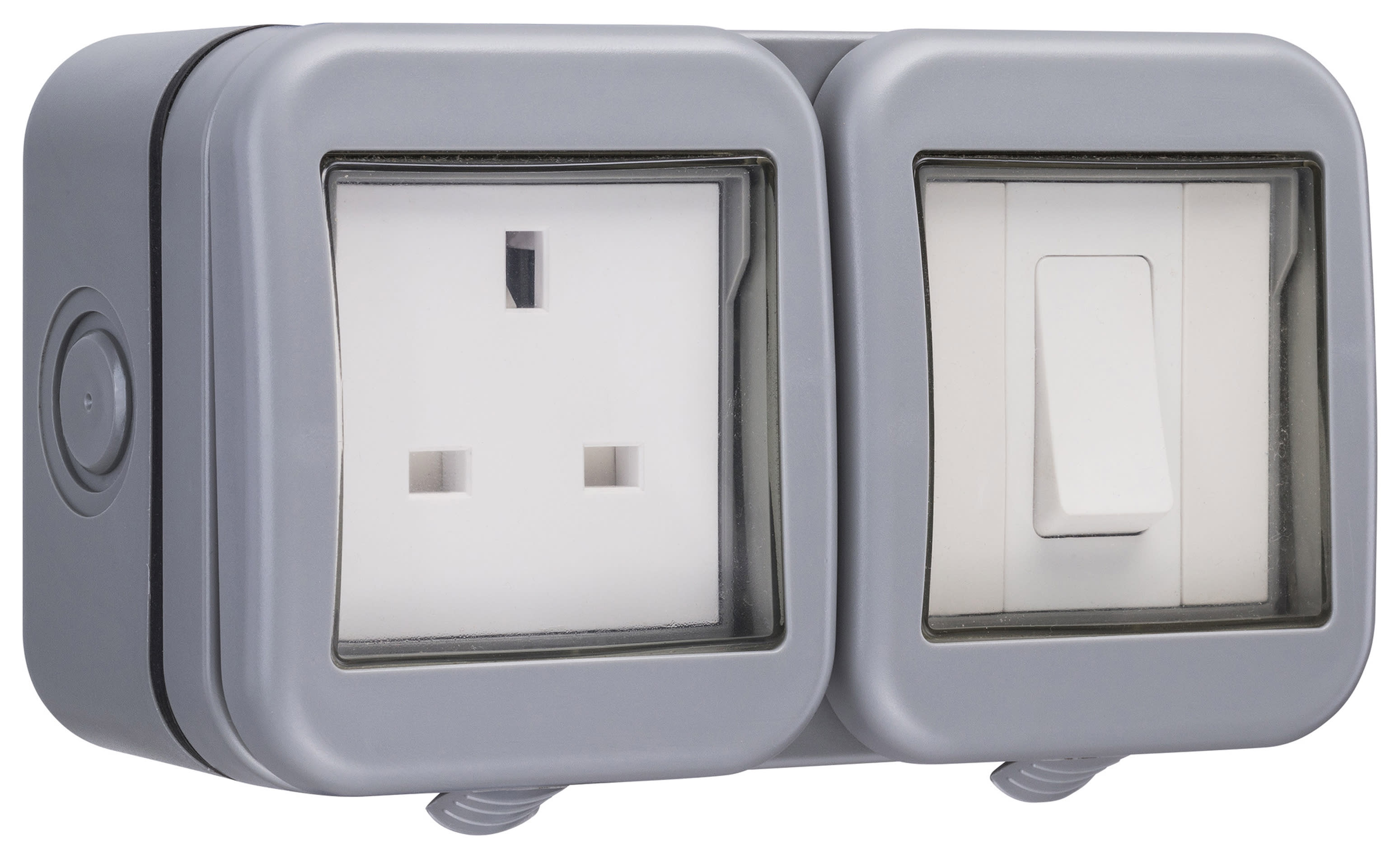 Masterplug 13A Single Exterior Unswitched Socket & Switch - Grey