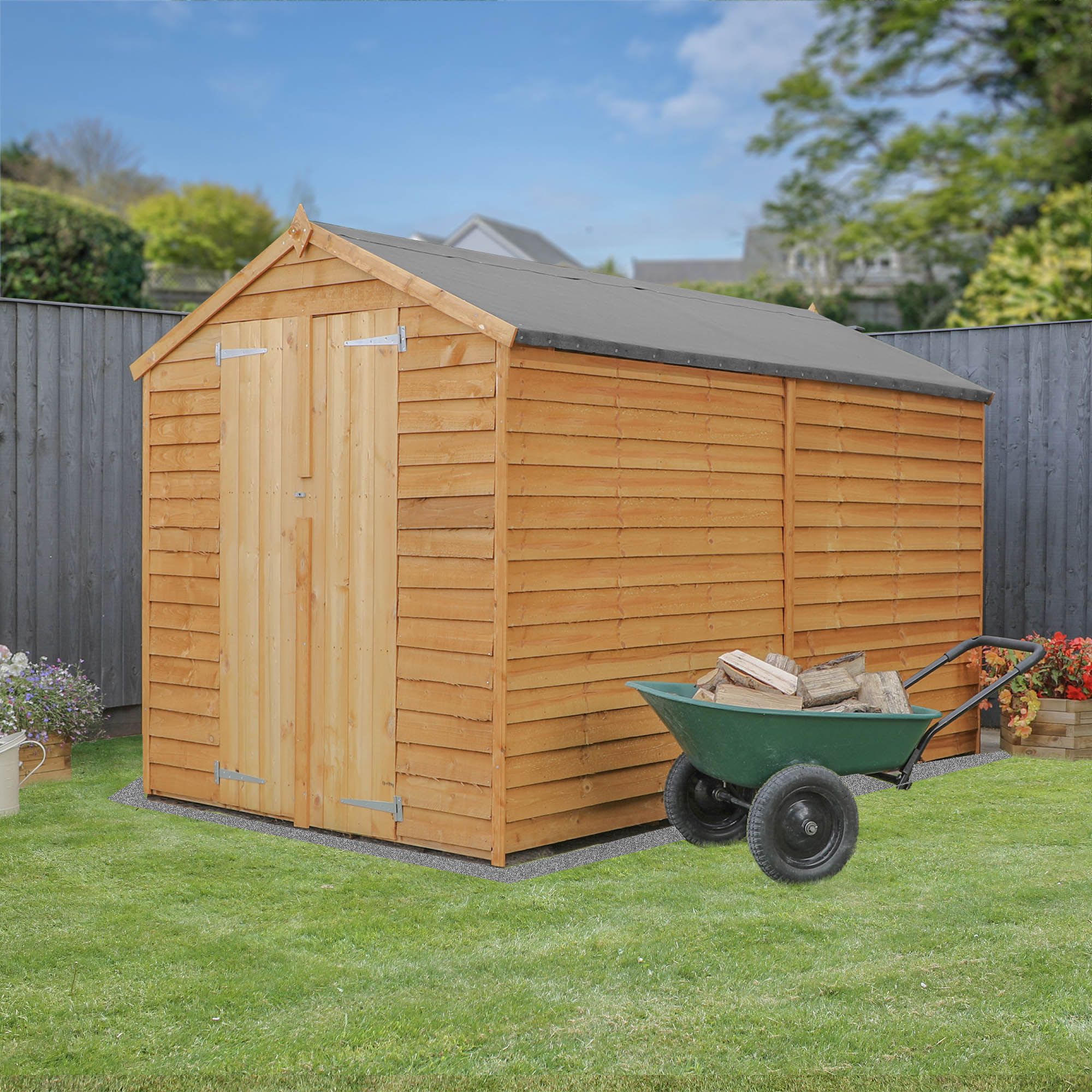 The Mercia Windowless Overlap Apex Shed offers a spacious and affordable storage solution. Featuring double doors, this building is great for accessing and storage. The windowless design will ensure your belongings remain safe and secure. The walls on this garden building are formed using horizontal boards that overlap each other, this traditional method of construction creates solid panel. The traditional apex roofline ensures there is plenty of height inside. The floor and roof are constructed using solid sheet board, which is perfect for everyday general use. Robust roofing felt, fixtures and fitting are all supplied as standard, alongside our detailed instructions and manufacturers recommendations to ensure a simple, stress free assembly process.