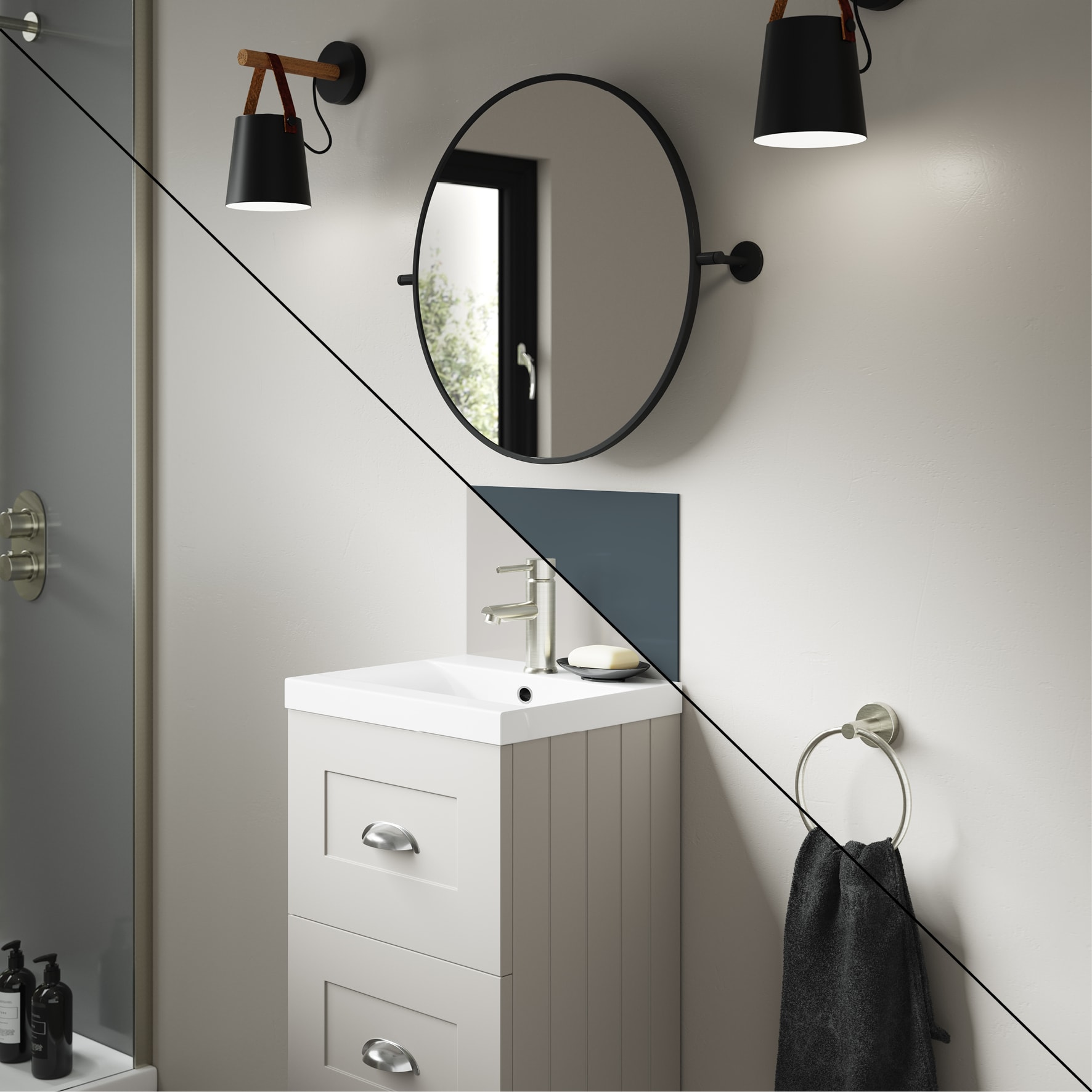 - Double sided splashback: malibu grey on one side and storm blue on the reverse