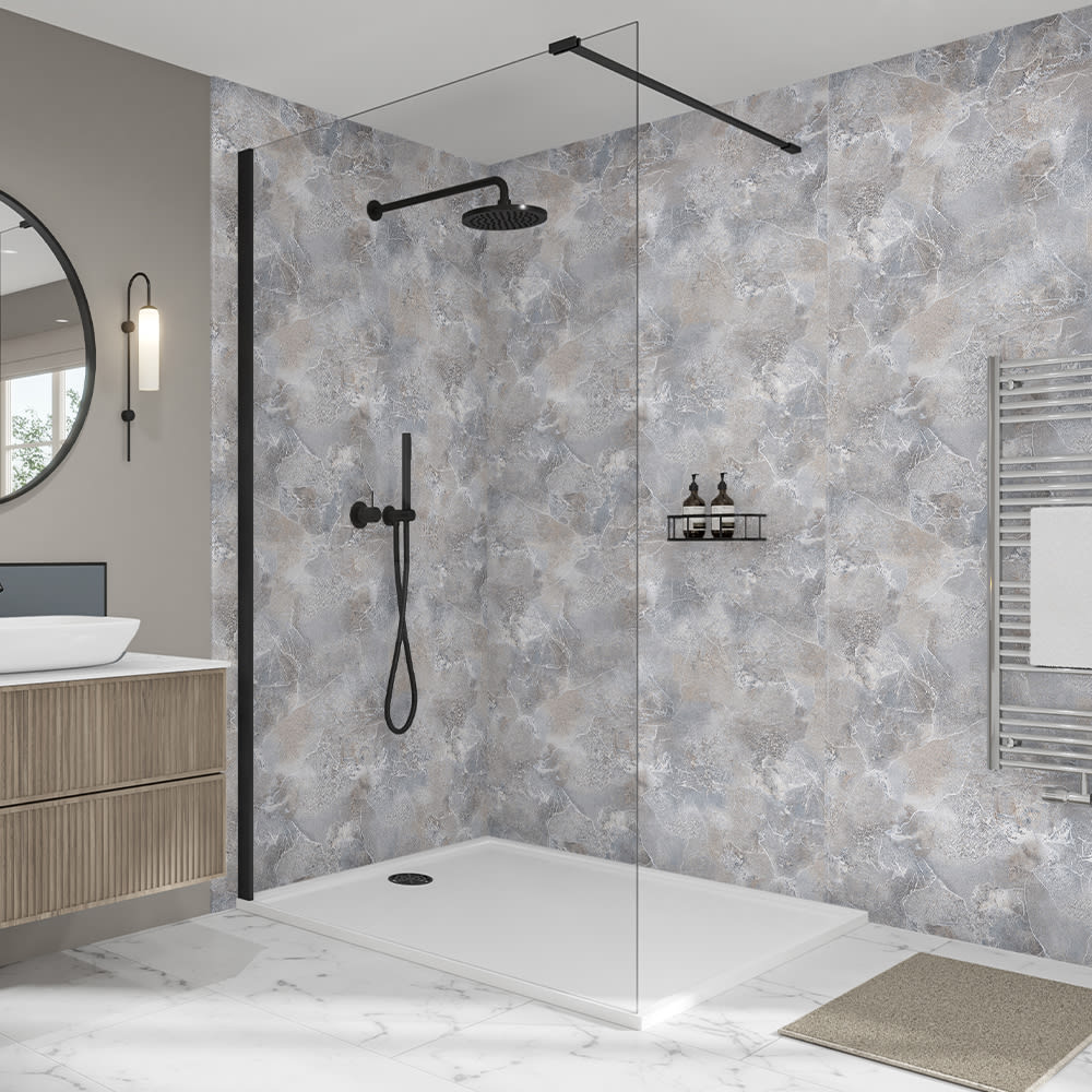 - Wetwall Elite Serpentine Stone 3 Sided Shower Panel Kit - 1200 x 900mm