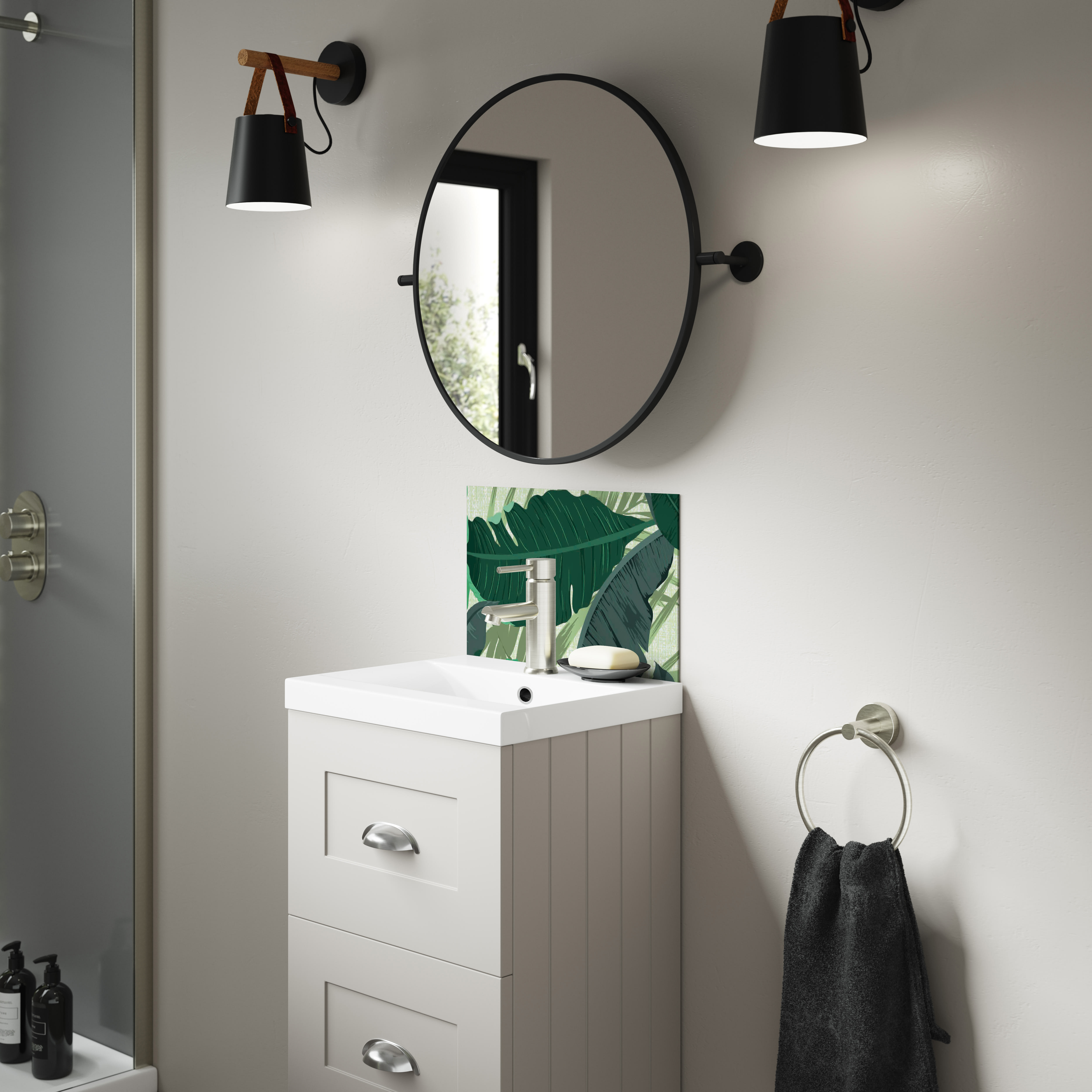 The Mermaid Bathroom Splashback can help protect the wall area around your bathroom basin from moisture or staining. Manufactured from 4mm aluminium alloy, it features a vibrant palm leaf pattern and has a matt finish. Each splashback is easy to install and ideal to be placed behind sinks due to their durable waterproof finish. No grout is required which results in a high resistance to the build up of mould. They are easy to clean and maintain and also provide a quick way to add a stylish finishing touch to your bathroom or cloakroom.