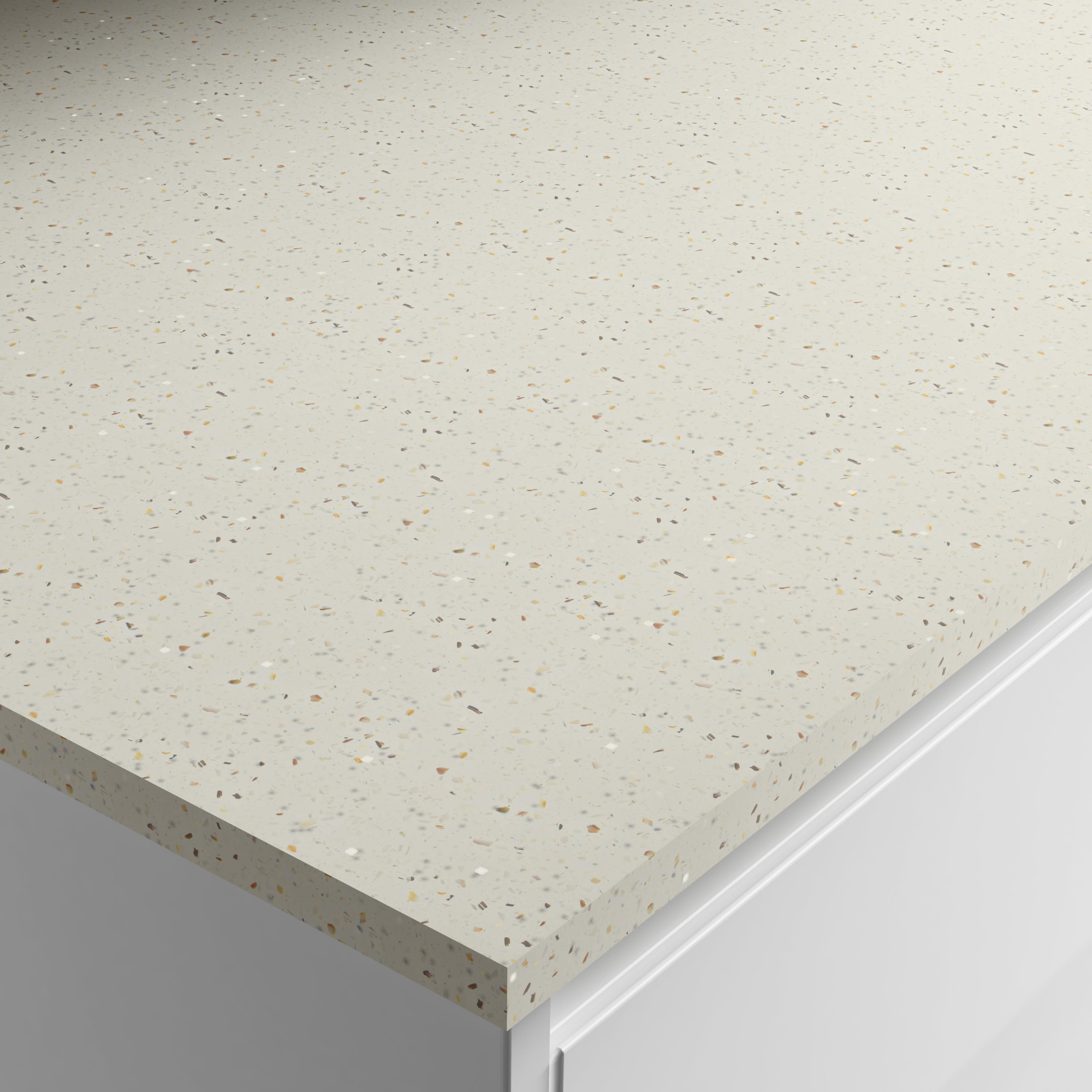 Experience a touch of everyday luxury with the Copper Fleck Worktop. Delivering a luxurious appearance, a cool and pleasing touch, and robust performance day in, day out, this worktop features a smooth creamy white base beautifully balanced with particulates of grey and mid-brown alongside the subtle shimmer of copper and mother of pearl.