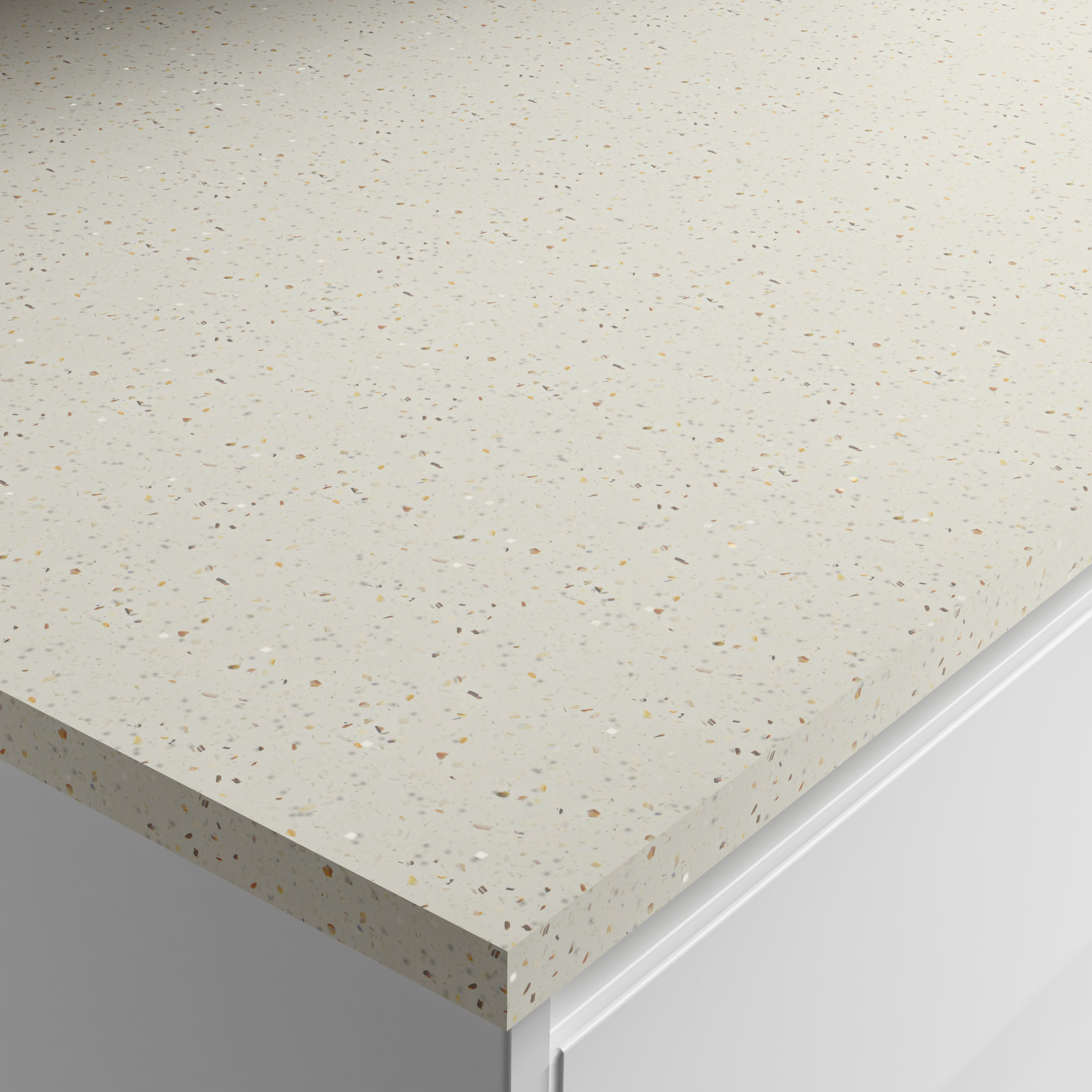 Redefine your kitchen space with our elegantly designed island, seamlessly blending style and practicality to enhance everyday living. More than just a statement piece, it provides additional workspace, smart storage solutions and a welcoming gathering spot for family and friends. It complements a variety of interiors, bringing balance to both contemporary and classic kitchen designs. Whether used for meal preparation, casual dining, or entertaining, this versatile island transforms your kitchen into a stylish and functional hub. With a smooth creamy white base, Copper Fleck balances beautifully particulates of grey and mid-brown alongside shiny elements of copper and mother of pearl.
