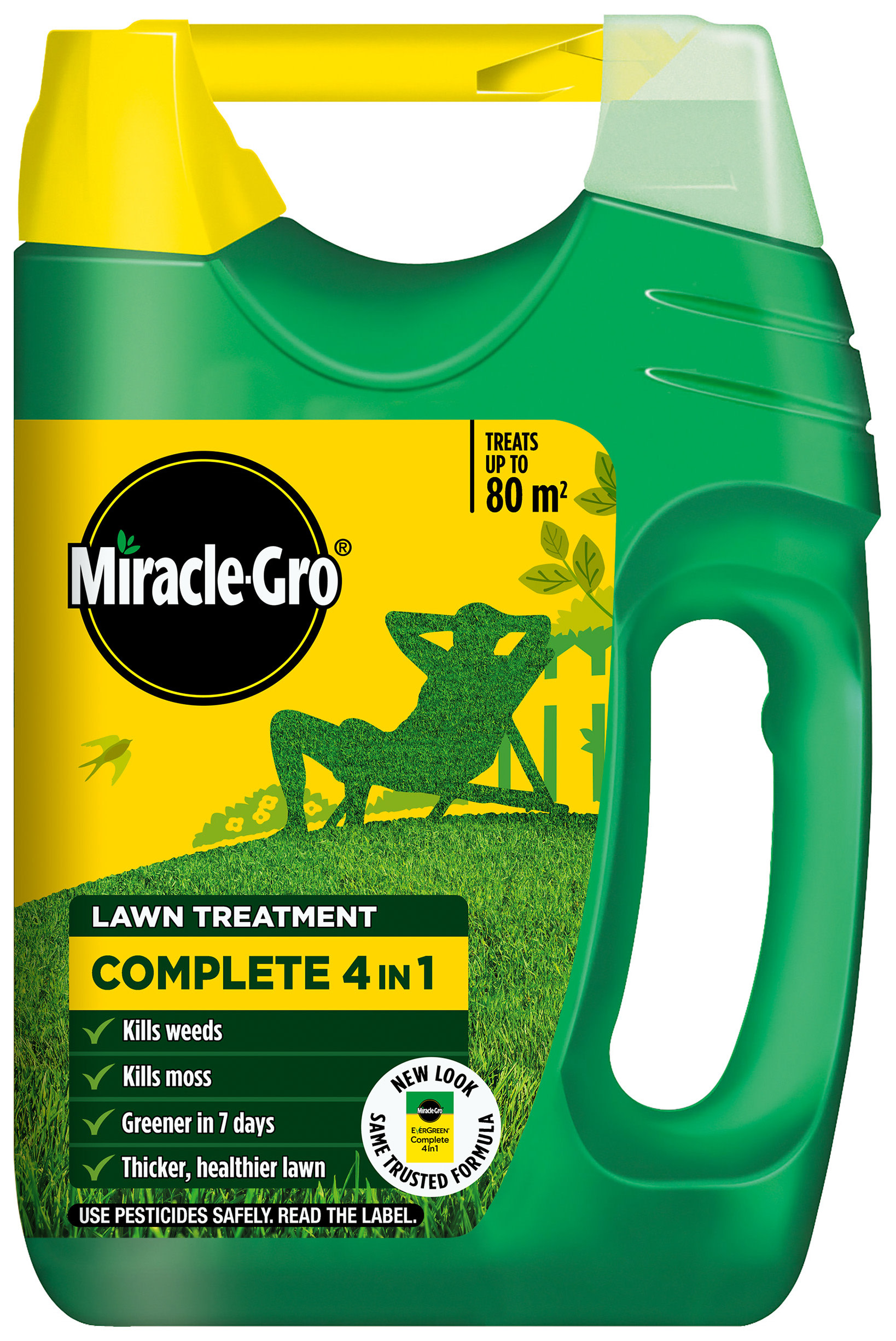 The Miracle-Gro Complete 4-in-1 Spreader not only feeds your lawn but also kills lawn weeds and controls moss. The water smart formula helps to protect your lawn against heat, drought and other stresses. Your lawn will be noticeably greener in 1 week. The moss will blacken as it dies and can then be easily raked out, and lawn weeds will be killed within 3 to 5 weeks.