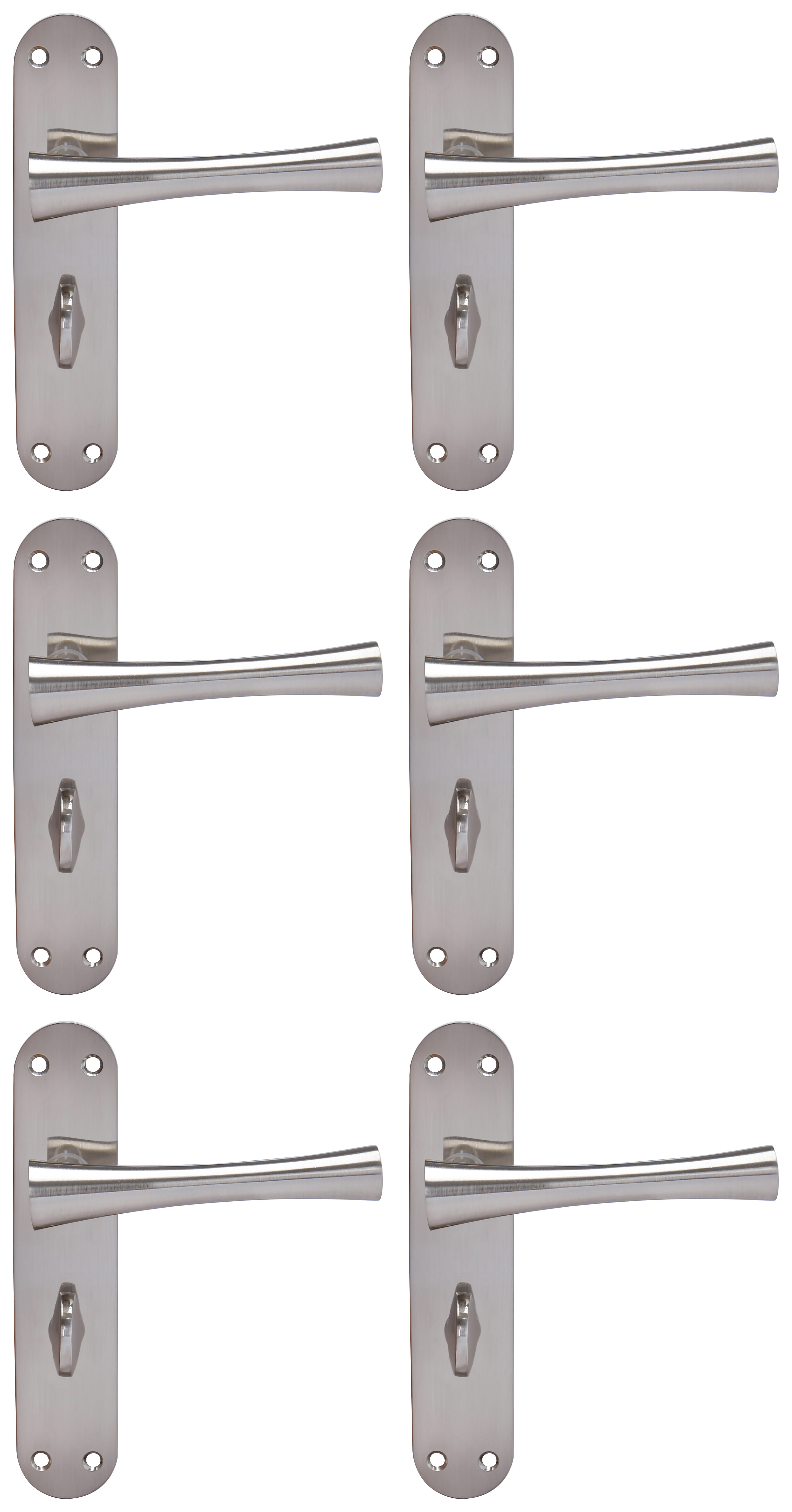 Monaco Satin Nickel Bathroom Door Handle - 3 Pairs
