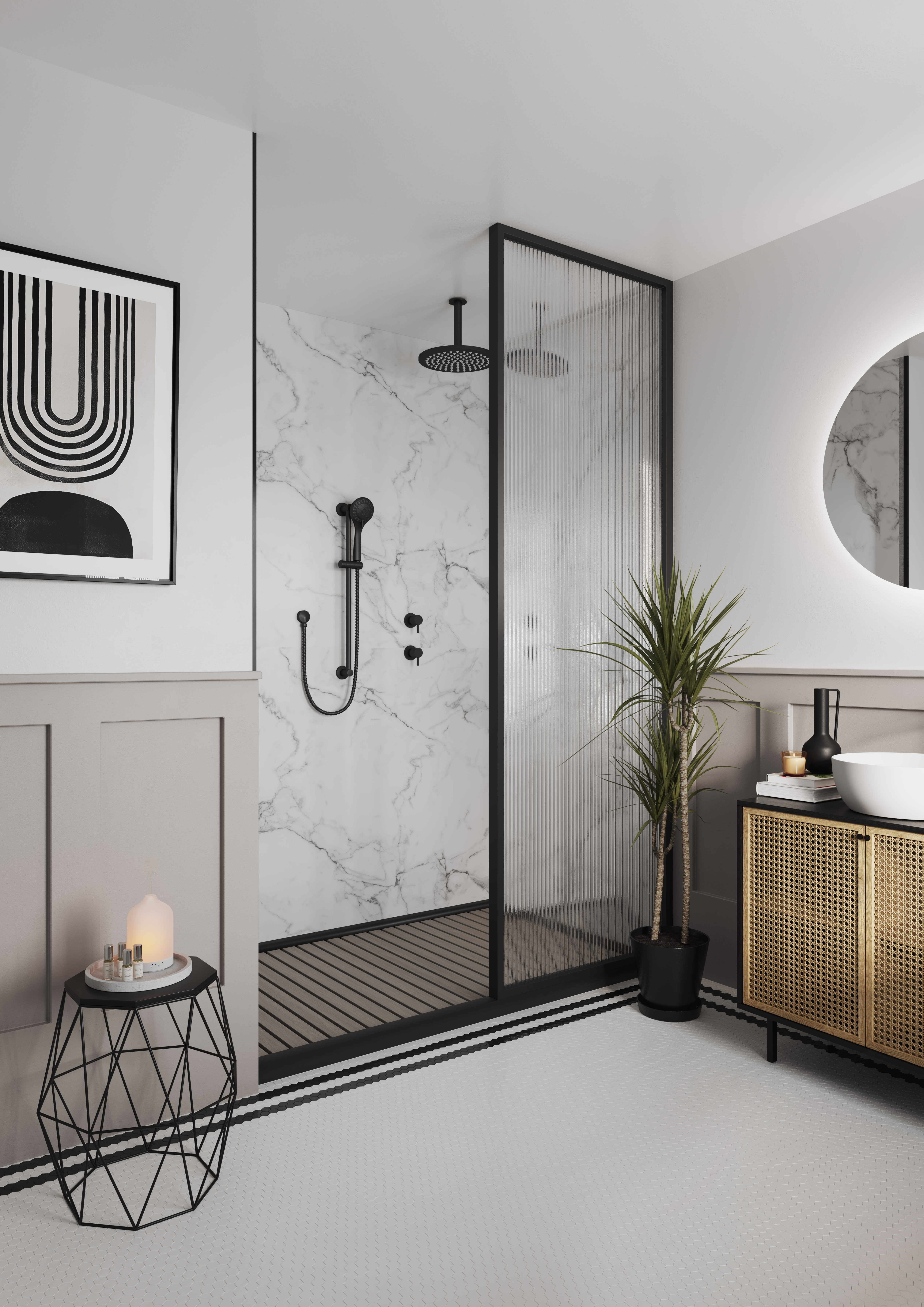 The pure collection by Multipanel offers a cost effective and functional solution for transforming your bathroom with clean, sheer finishings of pure colour and classic textures. Multipanel is quick, easy to fit and fully waterproof with an exterior grade MDF core and hydrolock tongue and groove edges. The white grey wall panel offers a strong neutral palette, creating a seamless, elegent bathroom look. An unlipped option is also available.