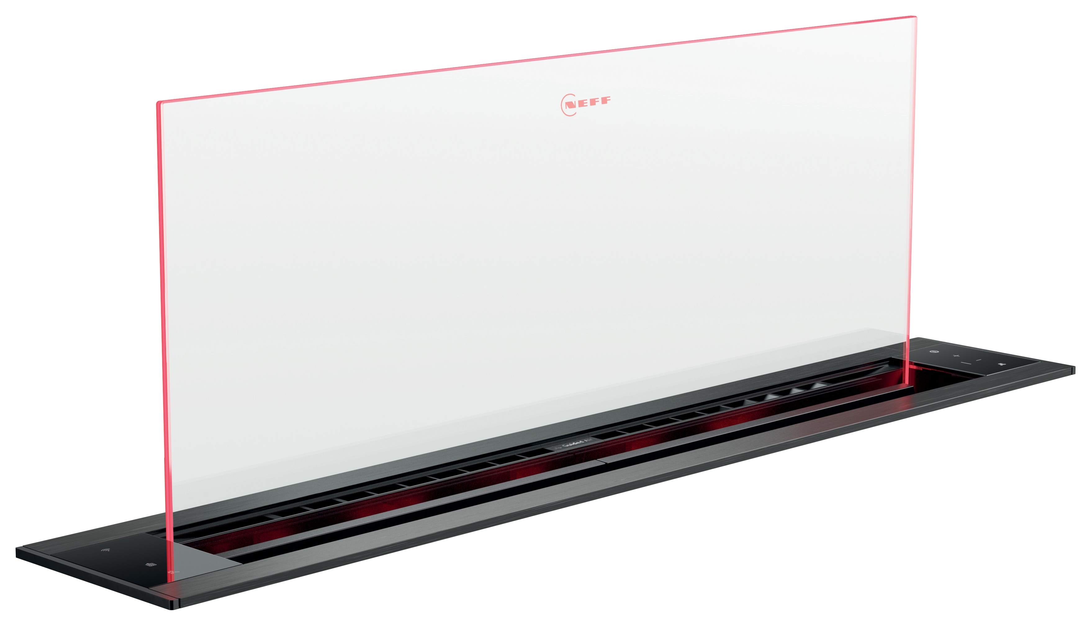 The NEFF Downdraft Cooker Hood ensures equally powerful steam extraction across the entire cooktop, regardless of where the pots or pans are placed. It features a glass panel with illumination offering 25 million color options to inspire and enhance the lighting of your cooktop. The easy-access filter can be removed with a simple push of a button and is dishwasher-safe for effortless cleaning. The high extraction rate, driven by efficient motor technology, maintains a clear view while cooking.