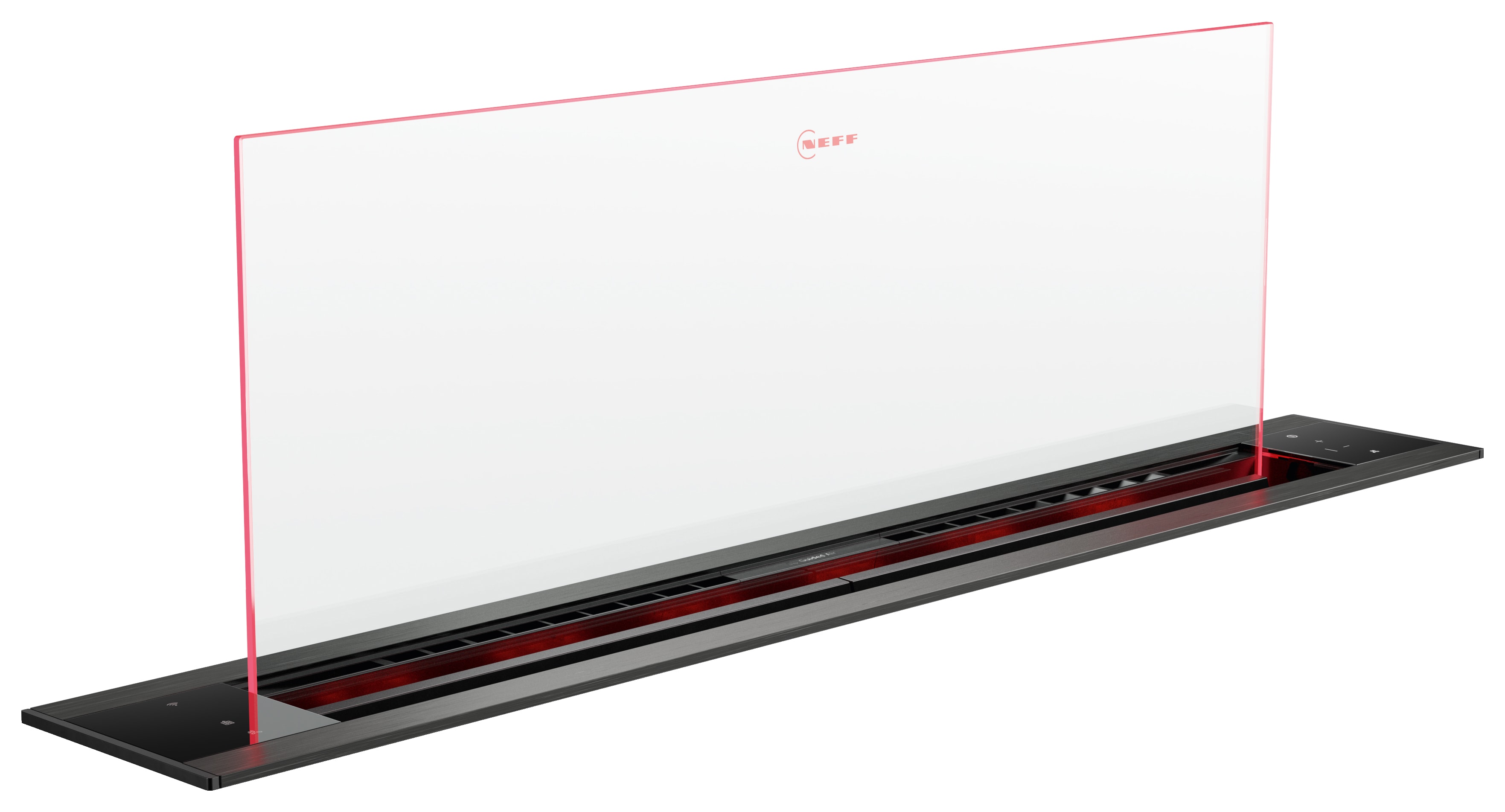 The NEFF Downdraft Cooker Hood ensures equally powerful steam extraction across the entire cooktop, regardless of where the pots or pans are placed. It features a glass panel with illumination offering 25 million color options to inspire and enhance the lighting of your cooktop. The easy-access filter can be removed with a simple push of a button and is dishwasher-safe for effortless cleaning. The high extraction rate, driven by efficient motor technology, maintains a clear view while cooking.