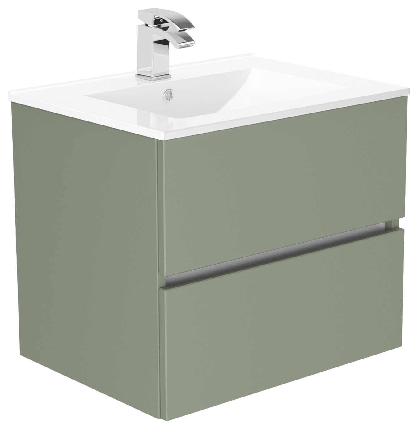 Newland Sage Green Basin Suspended Double Drawer Unit - 600mm