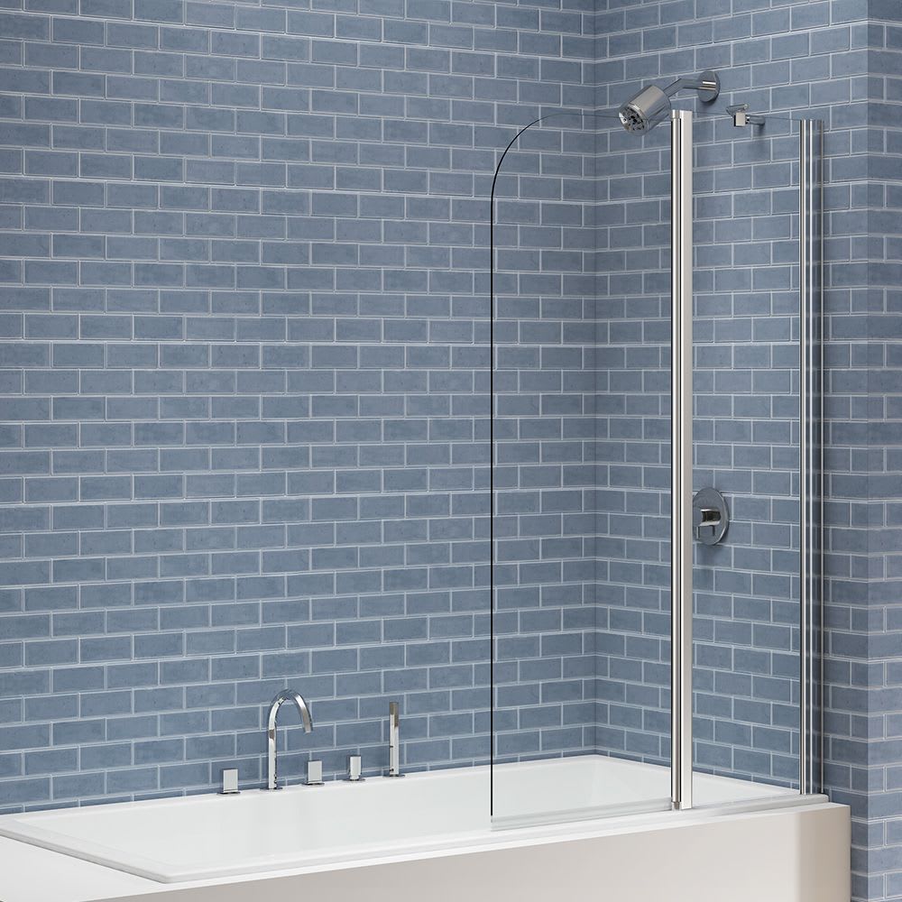Featuring both design and functionality the Nexa By Merlyn 6mm Chrome 2 Panel Folding Curved Bath Screen is the ultimate in space efficiency. By means of a smooth pivot action, this bath screen allows easy access to a relaxing in-bath showering experience. With the new 'Easy-Fit' option, you are sure to have a hassle free solution to changing an old or tired looking bath screen. The easy fit mechanism means you can replace a bath shower screen without the need to drill new holes into the bathroom wall.