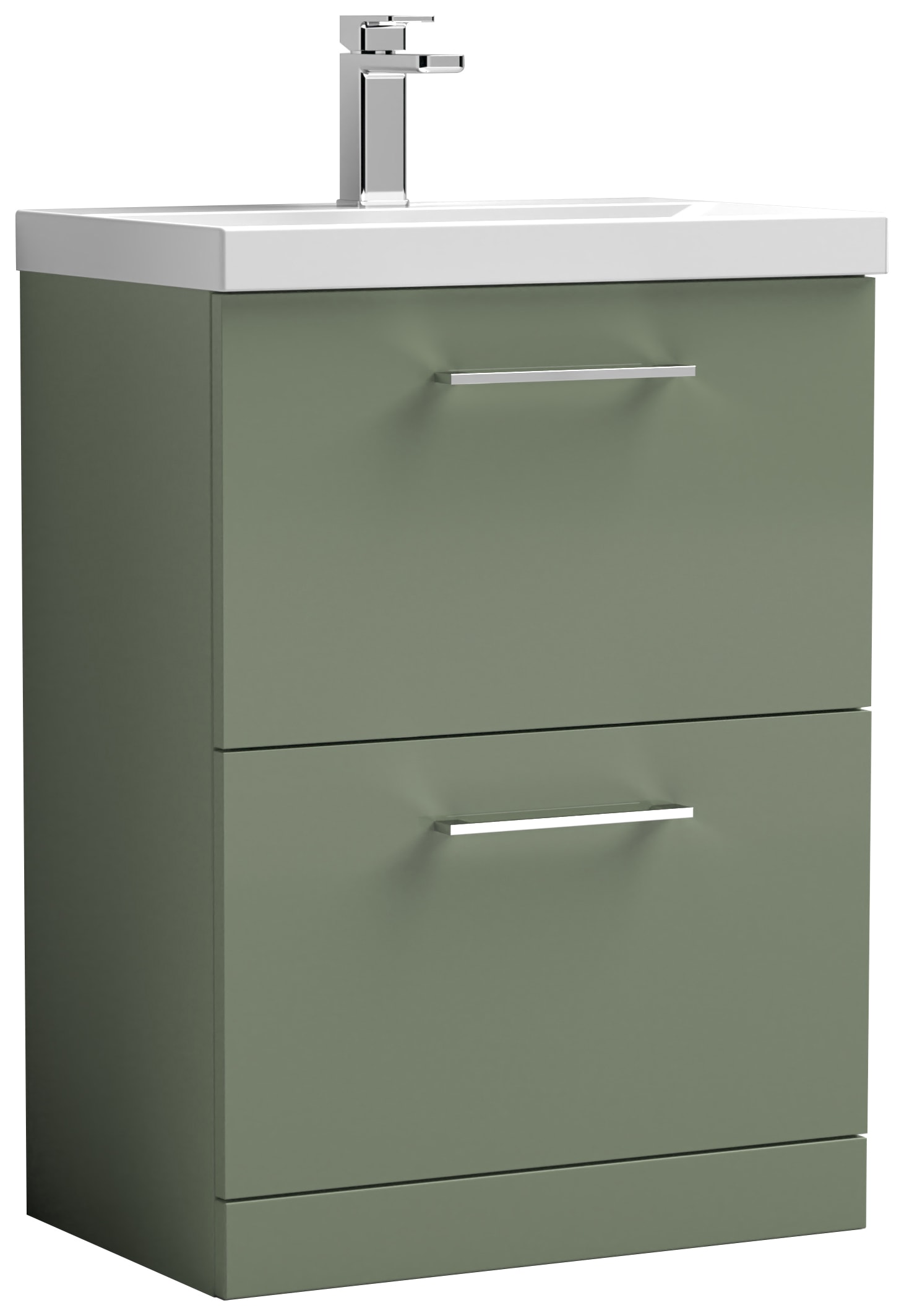 Nuie Arno Satin Green 2 Drawer Vanity Unit & Basin - 840 x 610mm