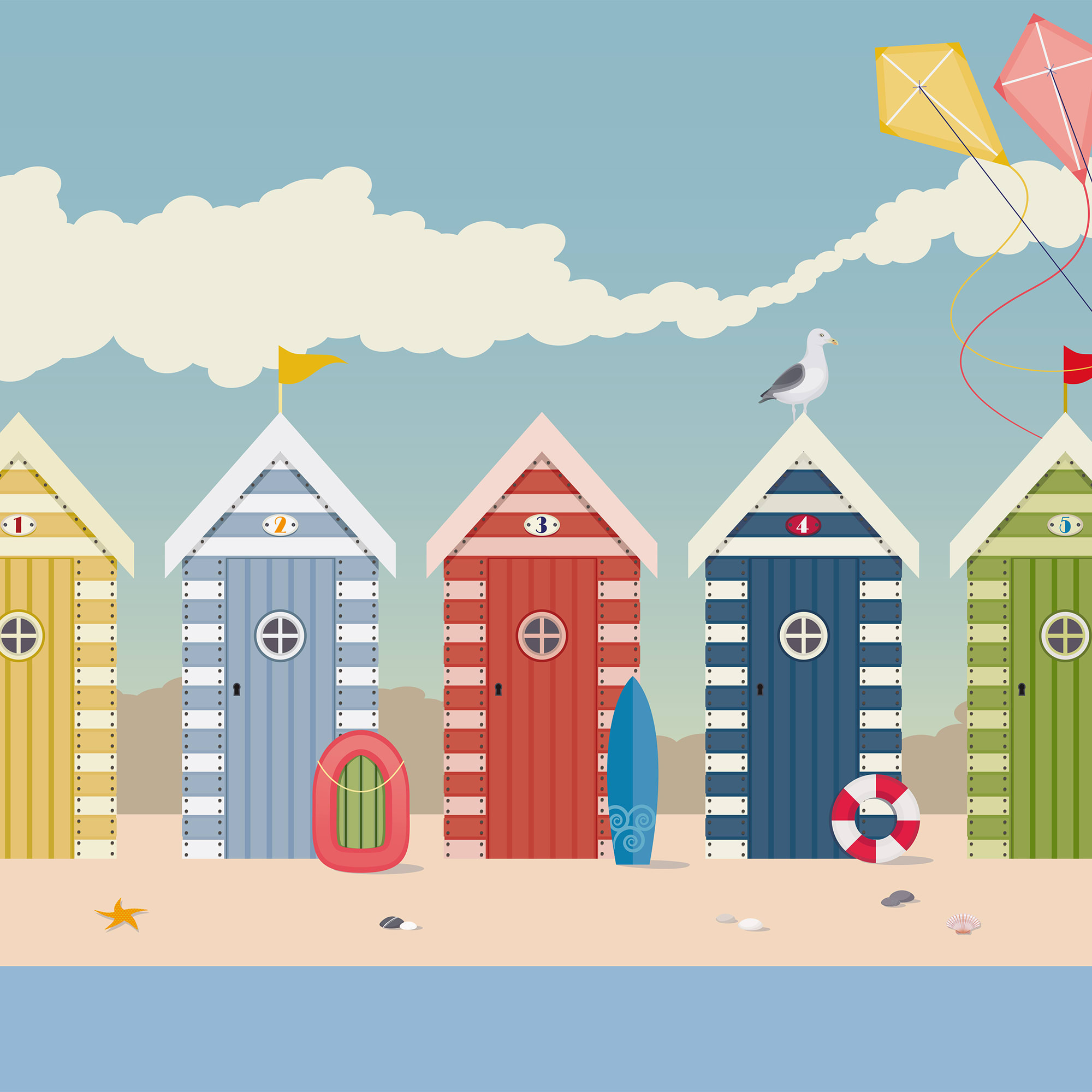 Origin Murals Beach Huts Blue Wall Mural - 3.5 x 2.8m