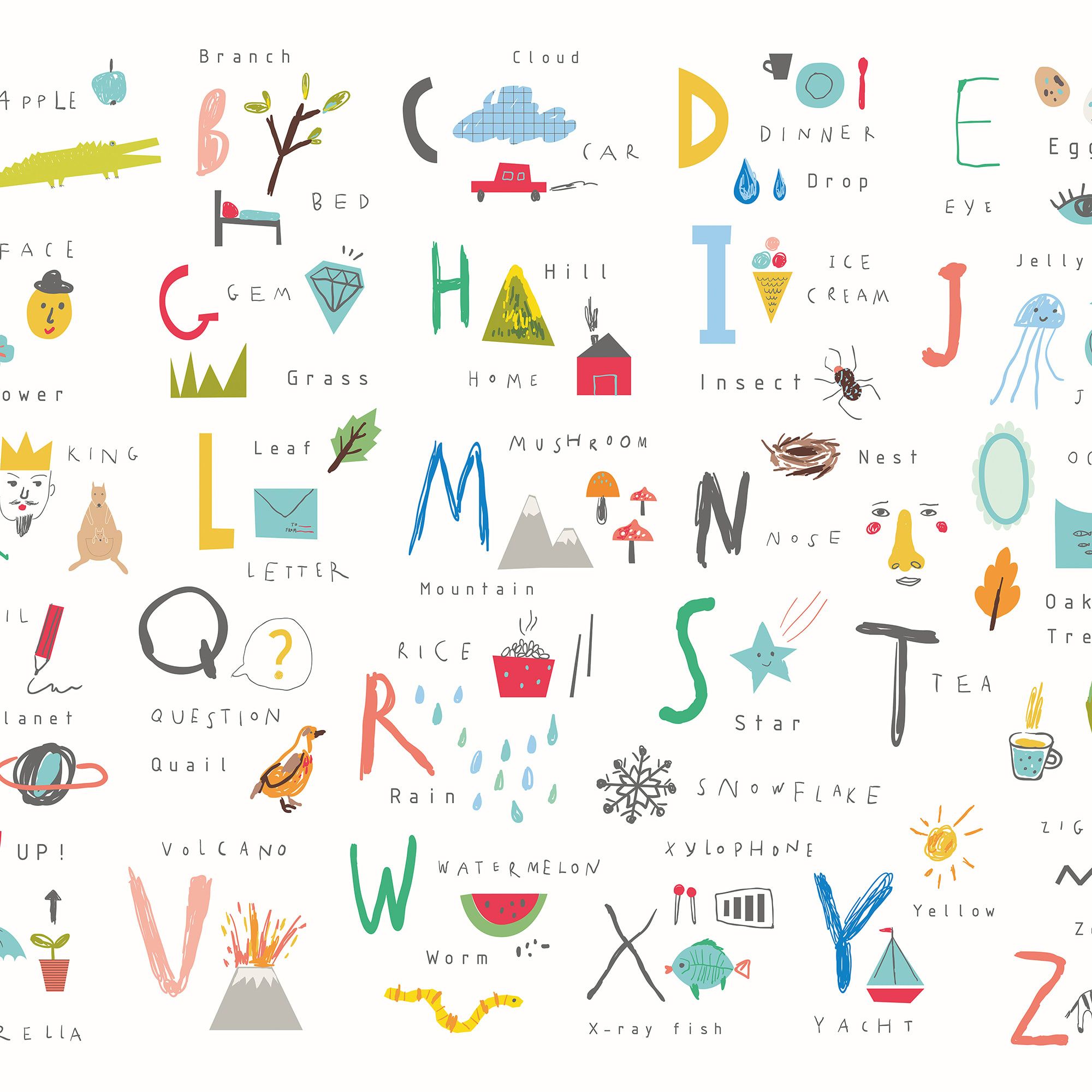 Origin Murals Childrens Alphabet Illustrations Multi Wall Mural - 3.5 x 2.8m