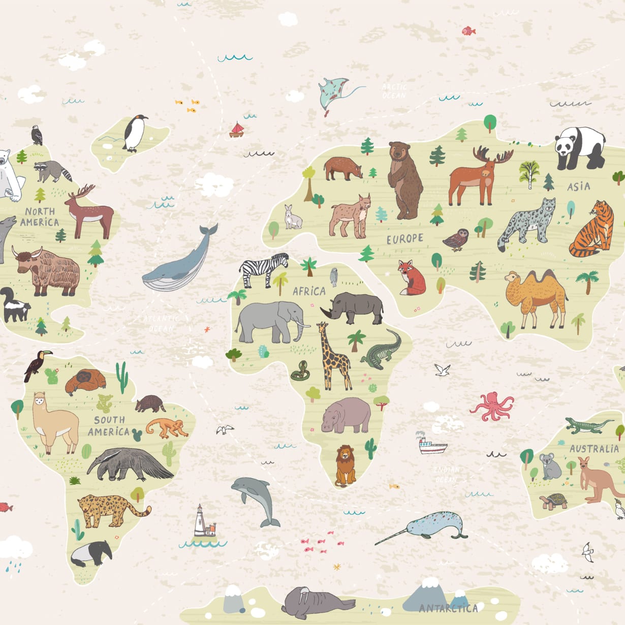 Origin Murals Childrens World Map Natural Wall Mural - 3 x 2.4m