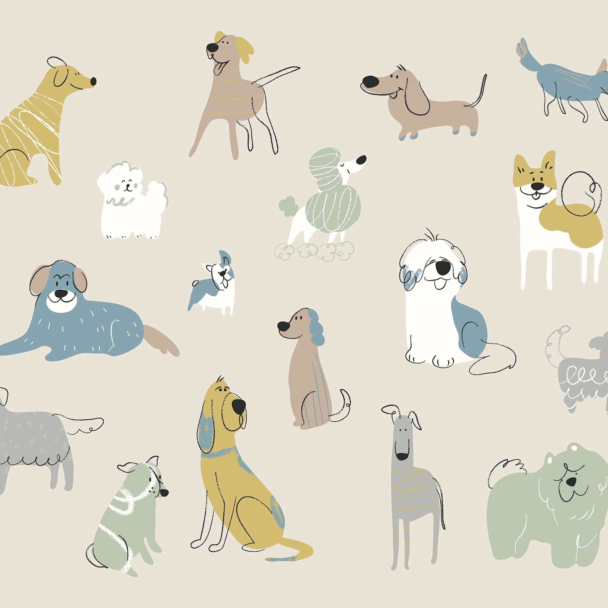 Positive, playful and downright charming, the Happy Dogs mural features a simple design of cartoon, doodled dogs of different breeds against a single-coloured ground. Happy and energetic, this mural is bound to introduce a sense of spirit to your space.