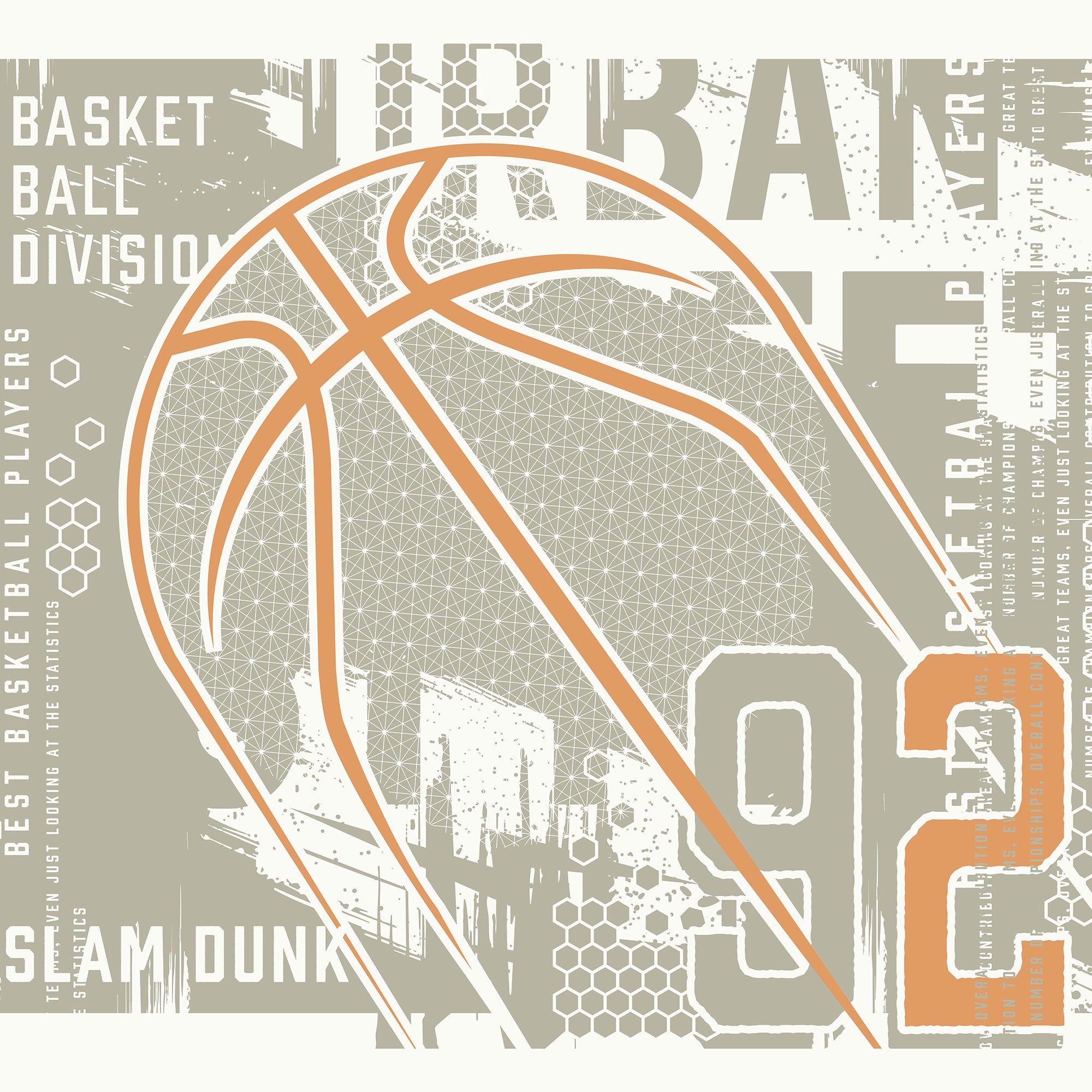 This abstract mural features the outline of an illustrated basketball, as well as a jersey number against a distressed background, the perfect mural for any basketball fans.