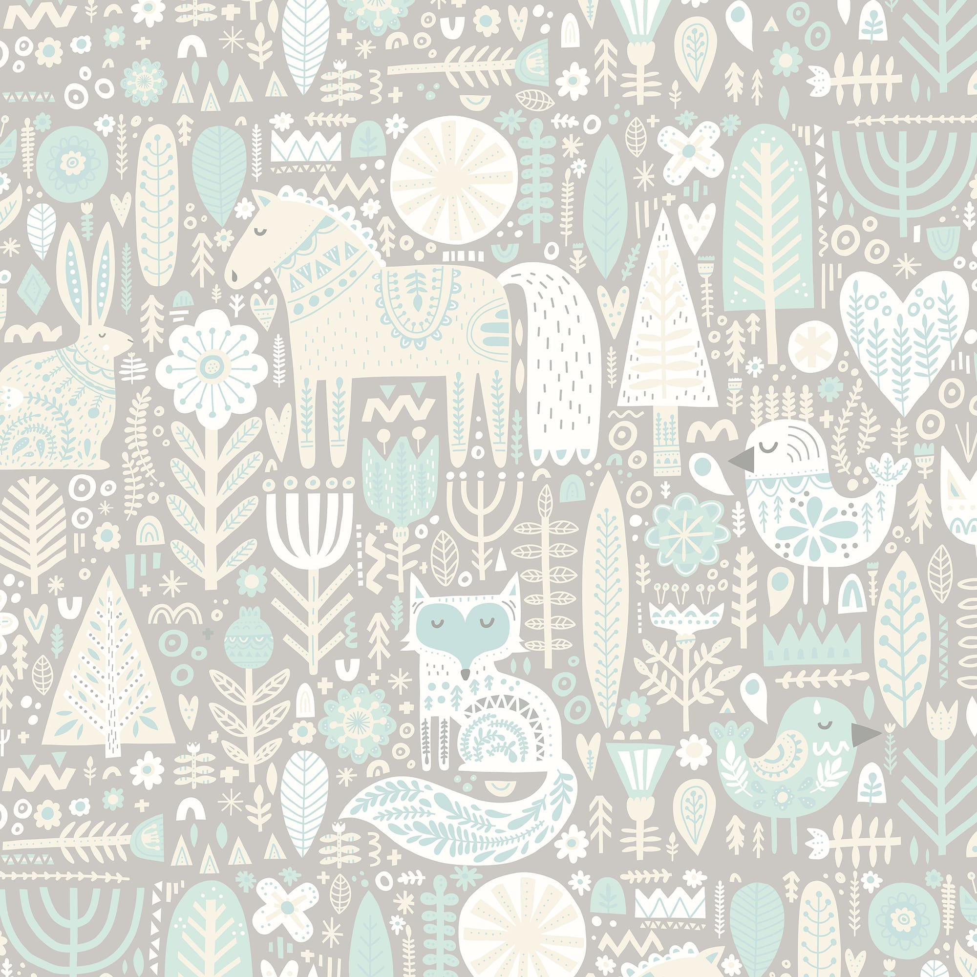 Origin Murals Scandi Forest Animals Grey Wall Mural - 3.5 x 2.8m