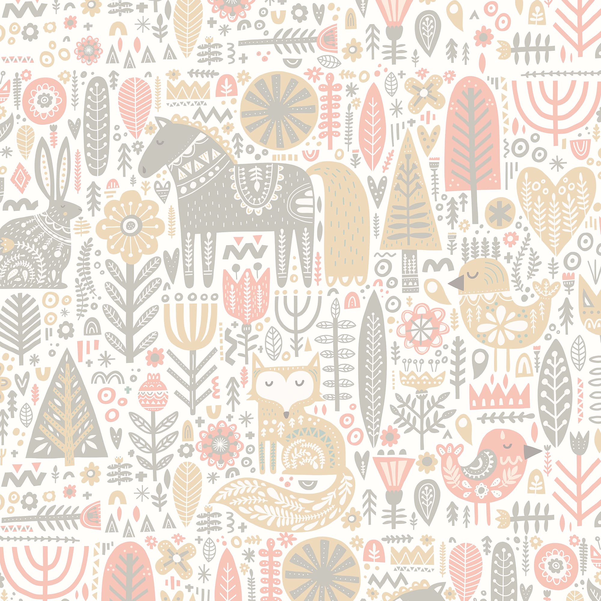 Origin Murals Scandi Forest Animals Pink & Grey Wall Mural - 3.5 x 2.8m