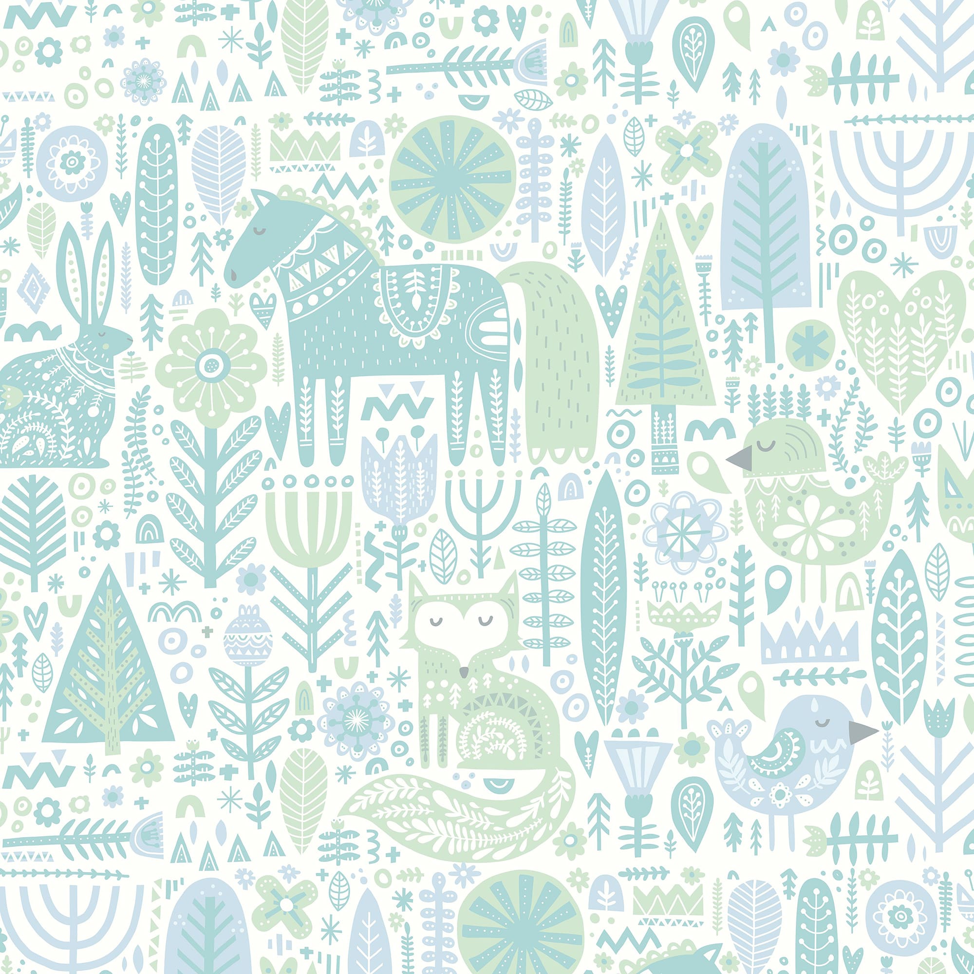 Origin Murals Scandi Forest Animals Teal Blue Wall Mural - 3.5 x 2.8m