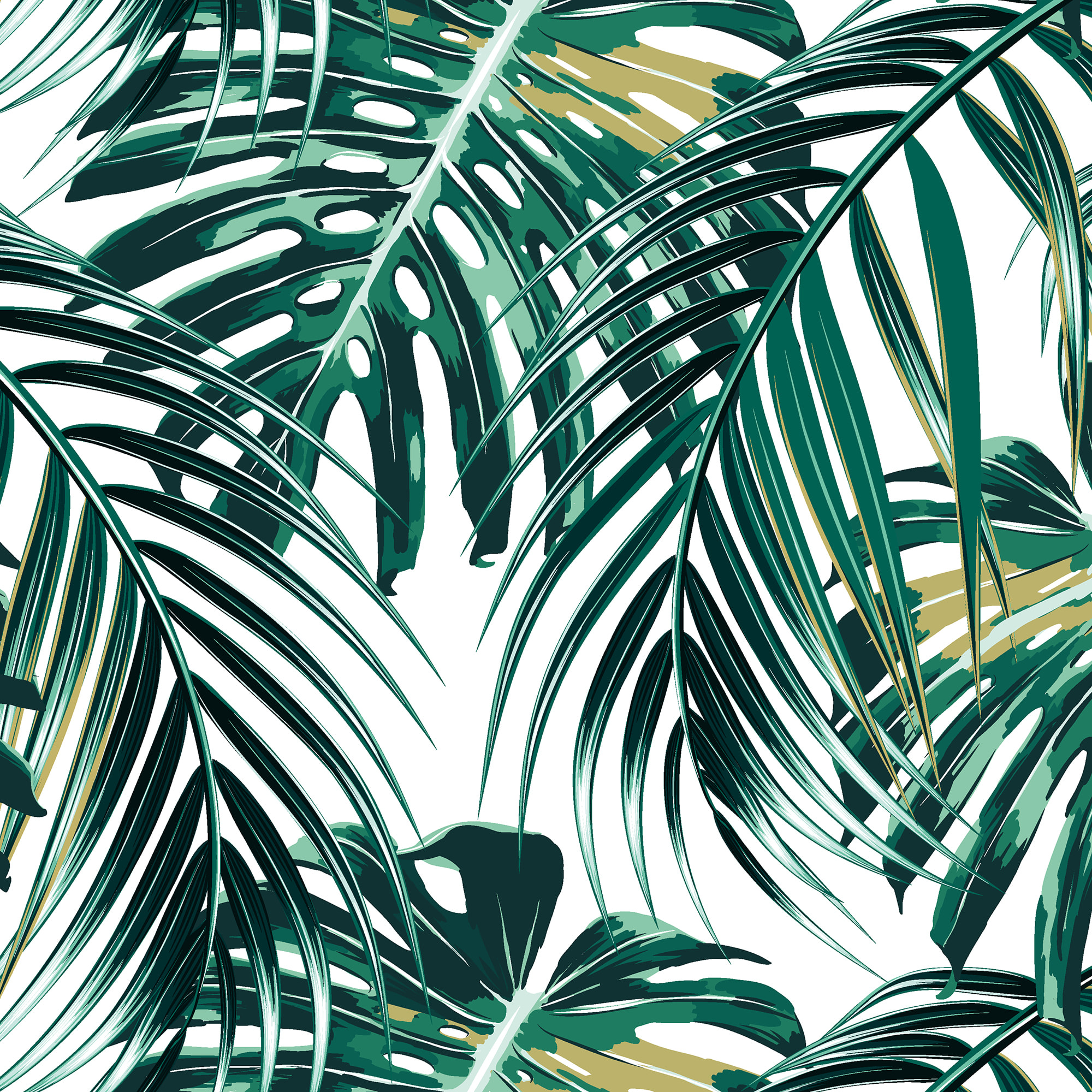 Large-scale tropical foliage drapes into the scene from all directions in this organic design, artistic brush strokes create depth and add layers of tonal colour and dimension.