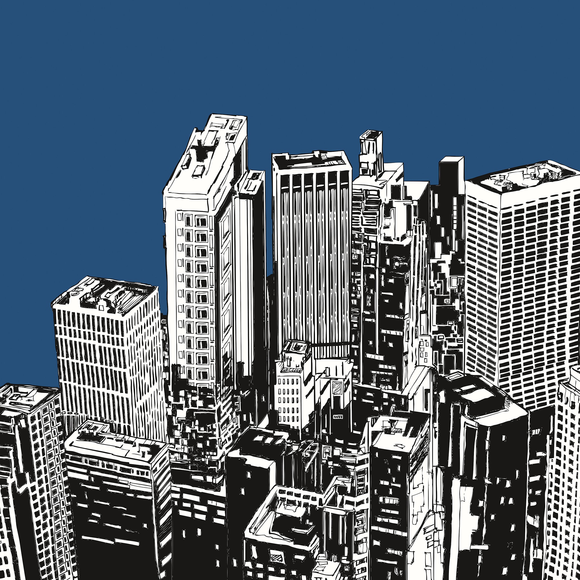 Origin Murals Urban City Skyscrapers Navy Blue Wall Mural - 3.5 x 2.8m