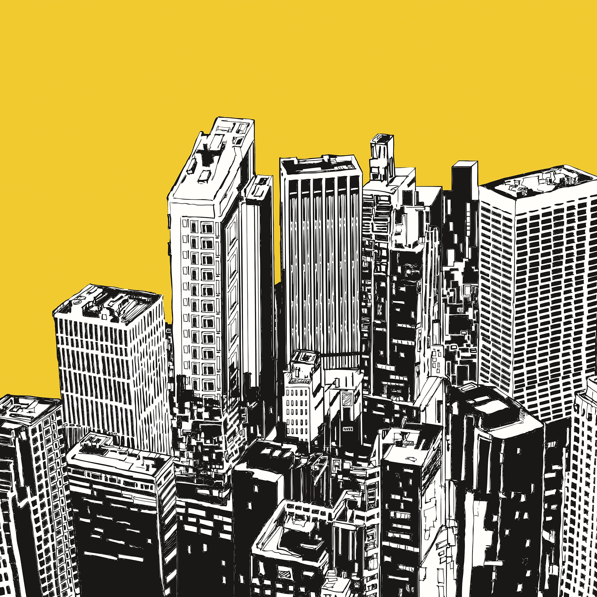 Origin Murals Urban City Skyscrapers Yellow Wall Mural - 3.5 x 2.8m