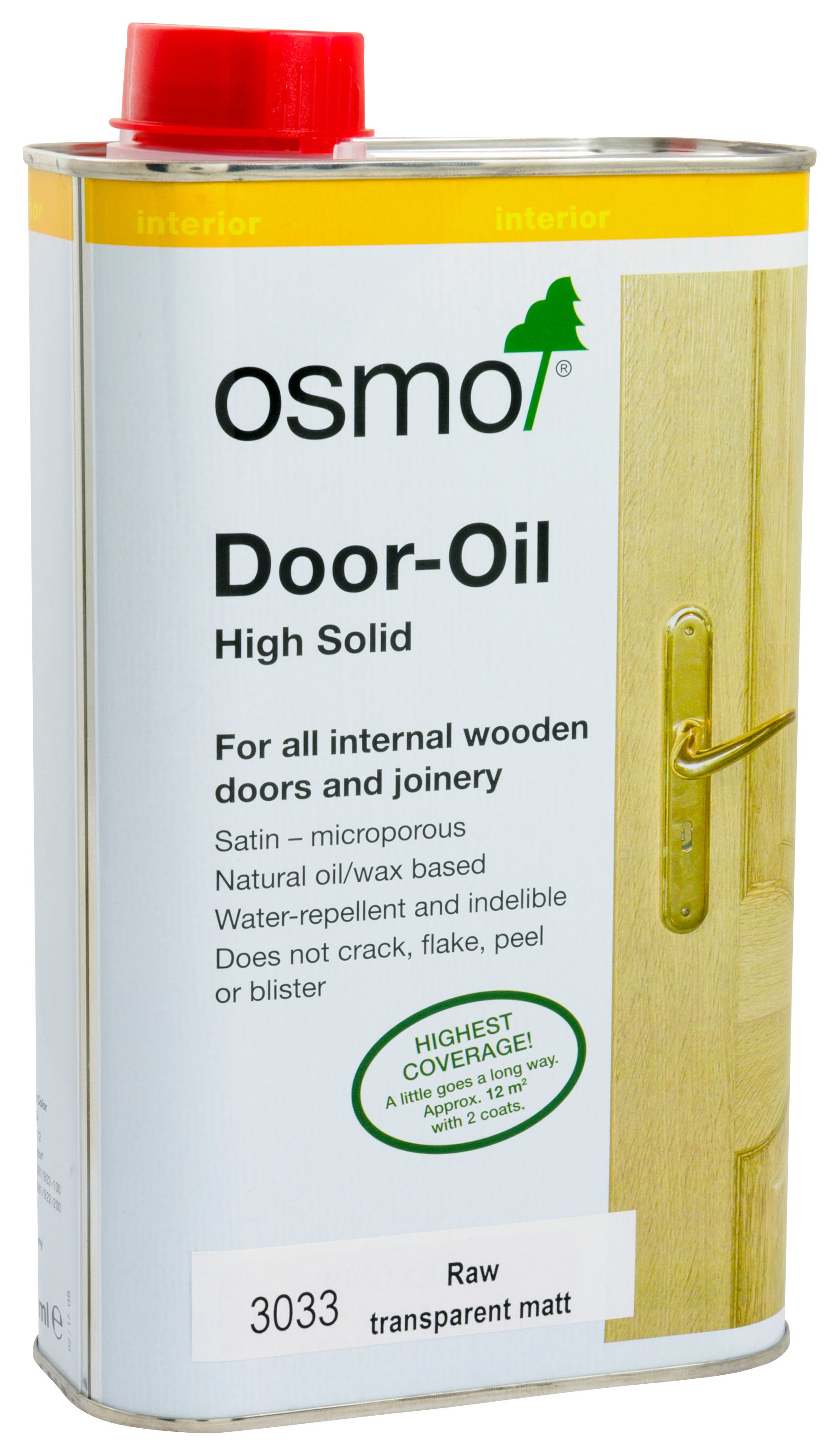 The Osmo Door Oil is a unique oil and wax combination designed to nourish and protect interior solid wooden doors, and some selected veneered doors. The unique formulation penetrates the wood surface whilst remaining microporous and breathable. The dried finish will not crack, peel, flake or blister. The surface also becomes healthy and elastic and the wood’s fibres are prevented from becoming dry and brittle over time reducing shrinking and swelling.