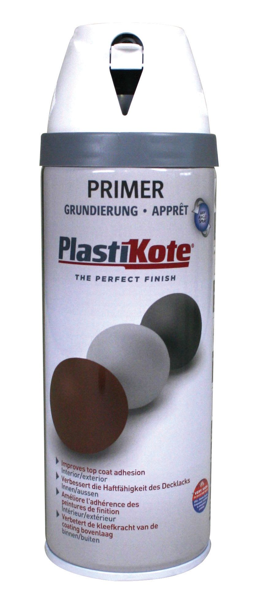The Plastikote Primer Spray Paint increases top coat adhesion, seals porous, bare or corroded surfaces, maximises durability and improves the overall finish of many surfaces with a formula designed for enhanced and consistent coverage. The new easy spray technology provides added control to make spray painting easier, faster and cleaner than ever before. The primer can be recoated at anytime for simple, faster project completion.