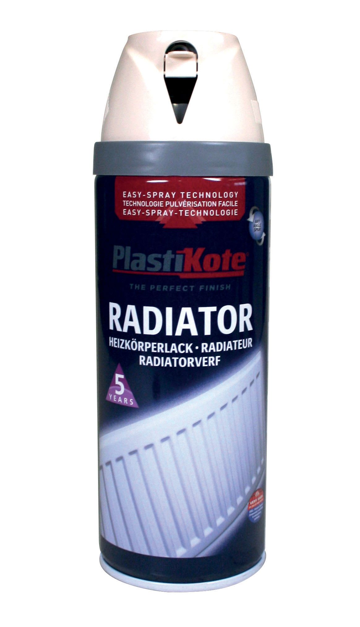 The PlastiKote Twist and Spray Radiator Spray Paint is specially formulated to make painting radiators quick and easy. The finish obtained is both durable and professional. There are no brushes to clean and you will not be left with brush marks on your radiator. The formula is non-yellowing and resists heat up to 100°.