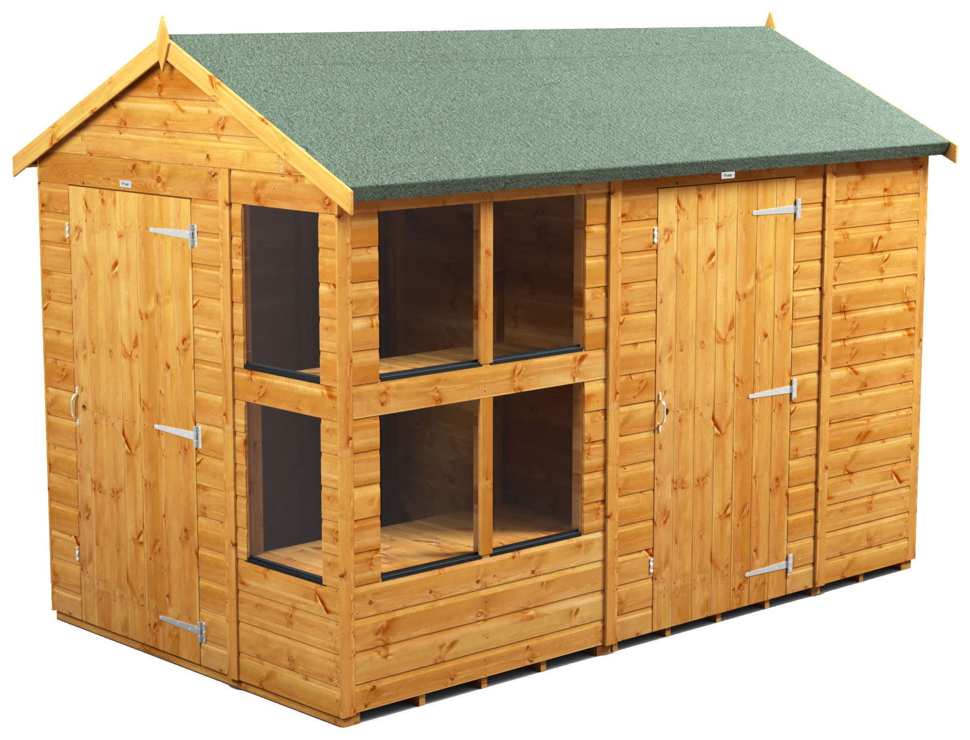 Power Sheds 10 x 6ft Apex Shiplap Dip Treated Potting Shed - Including Side Store