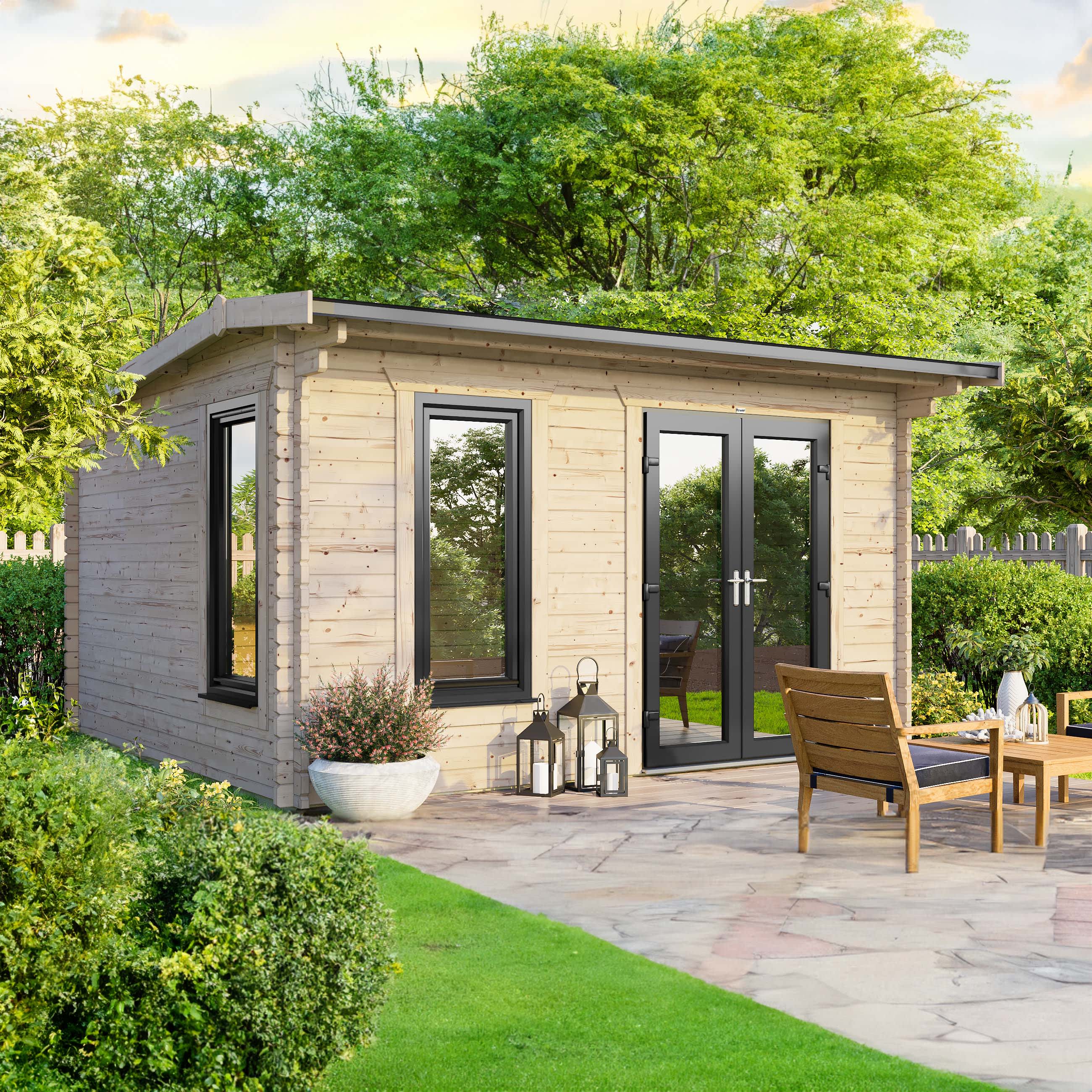 The Powersheds Right Hand Door Apex Notched Logs Log Cabin comes complete with uPVC double doors in anthracite grey and uPVC 'tilt and turn' opening Windows. All glass is both toughened and double glazed, perfect for extra security and insulation. The innovative construction and detailed instructions provided means this cabin is also straightforward to build.