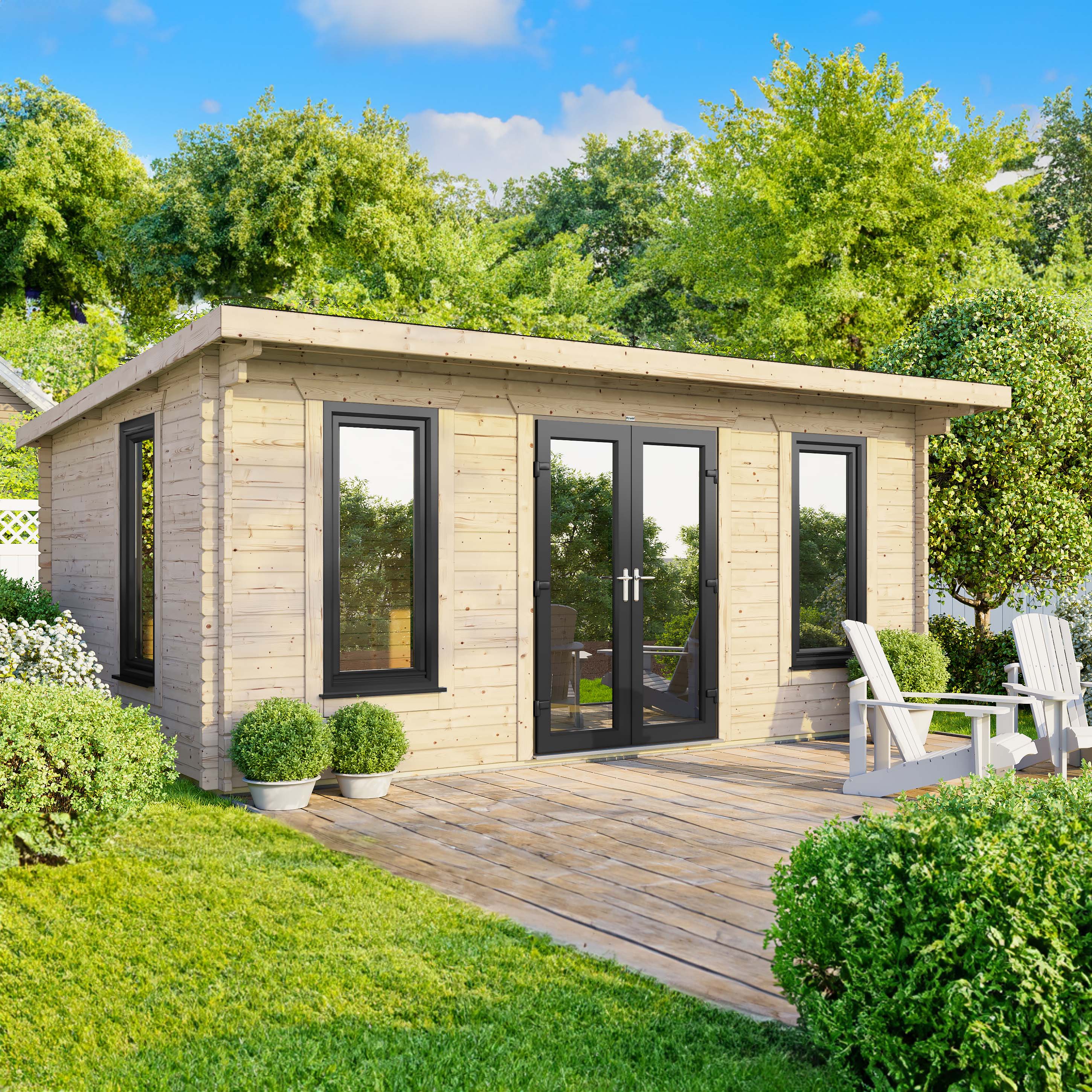 The Powersheds Central Doors Pent Notched Logs Log Cabin comes complete with uPVC double doors and uPVC 'tilt and turn' opening windows. All glass is both toughened and double glazed, perfect for extra security and insulation. This cabin has many great design features such as high grade tongue and groove floors and roofs, innovative rubber roofing system, and external sills on all windows.