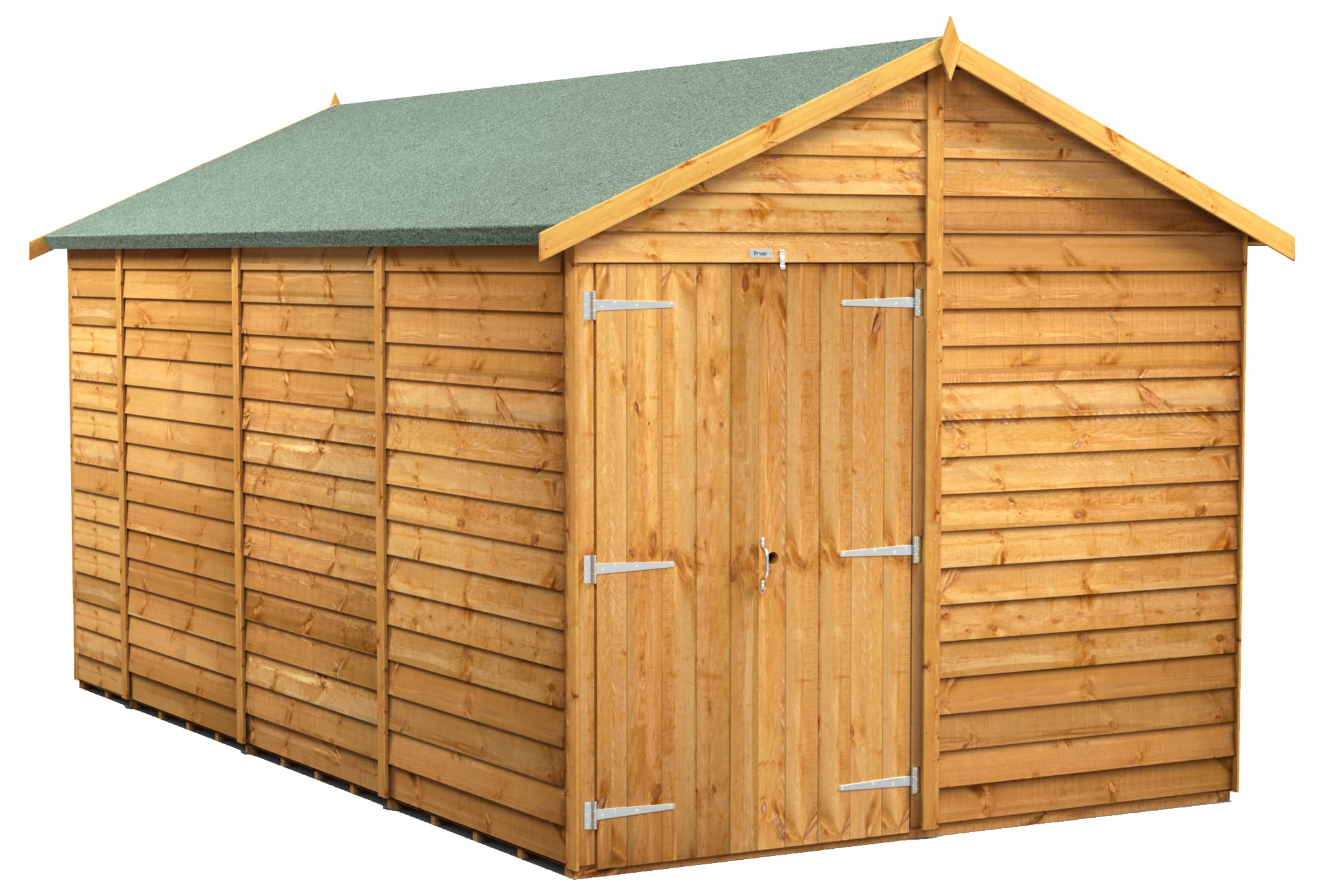 Powersheds Double Door Apex Overlap Dip Treated Windowless Shed - 14 x 8ft