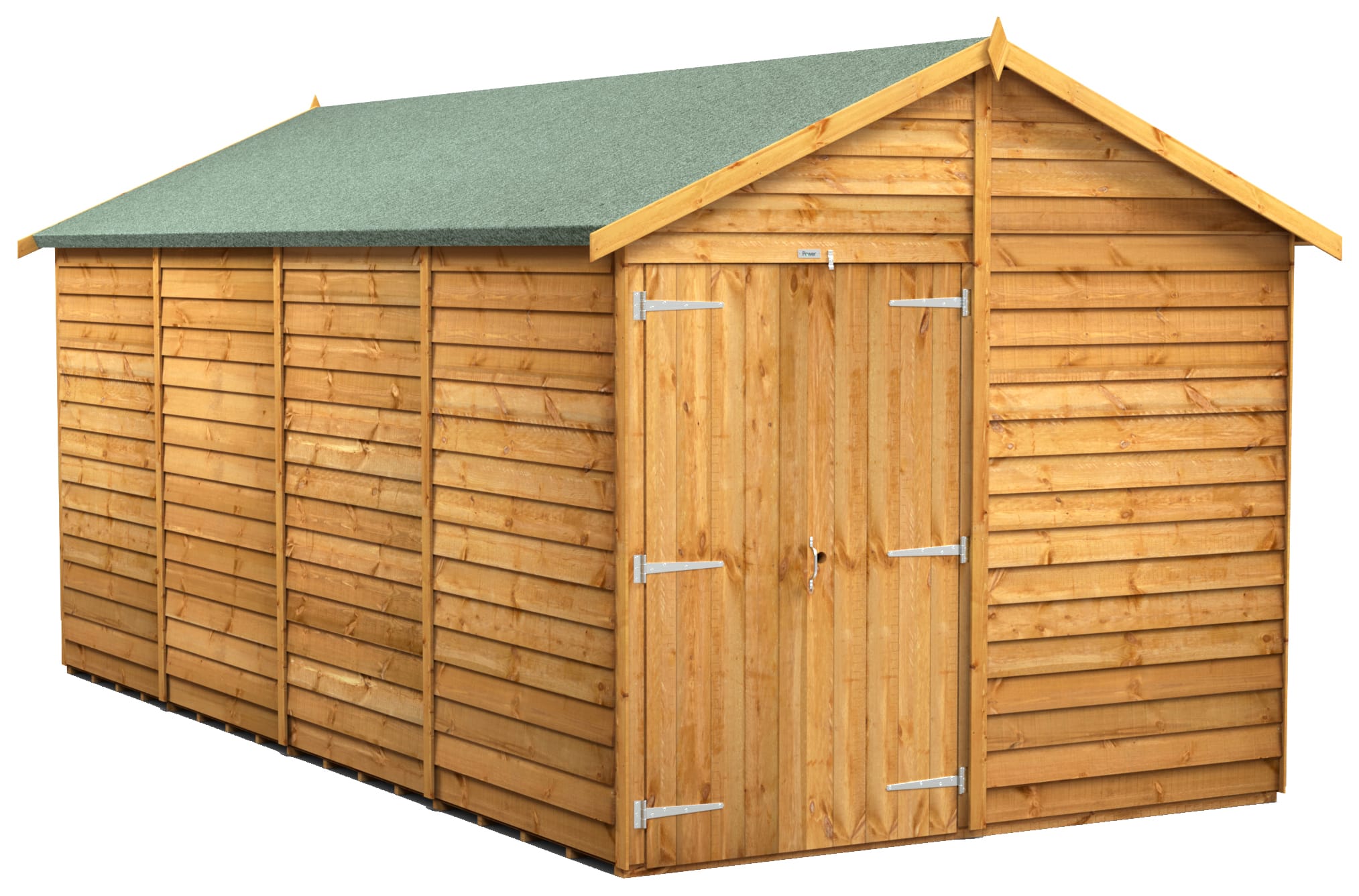 Powersheds Double Door Apex Overlap Dip Treated Windowless Shed - 16 x 8ft