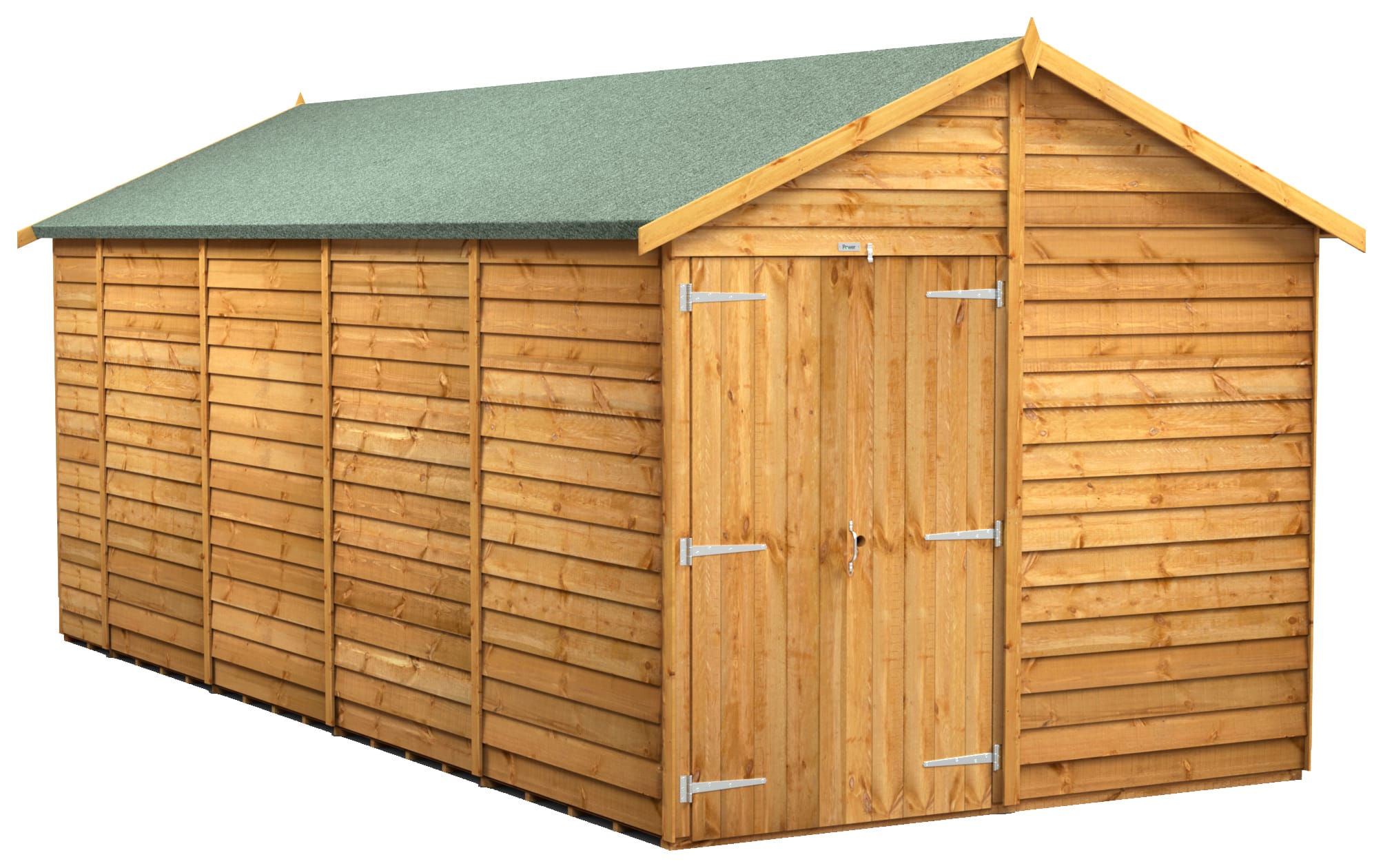 Powersheds Double Door Apex Overlap Dip Treated Windowless Shed - 18 x 8ft