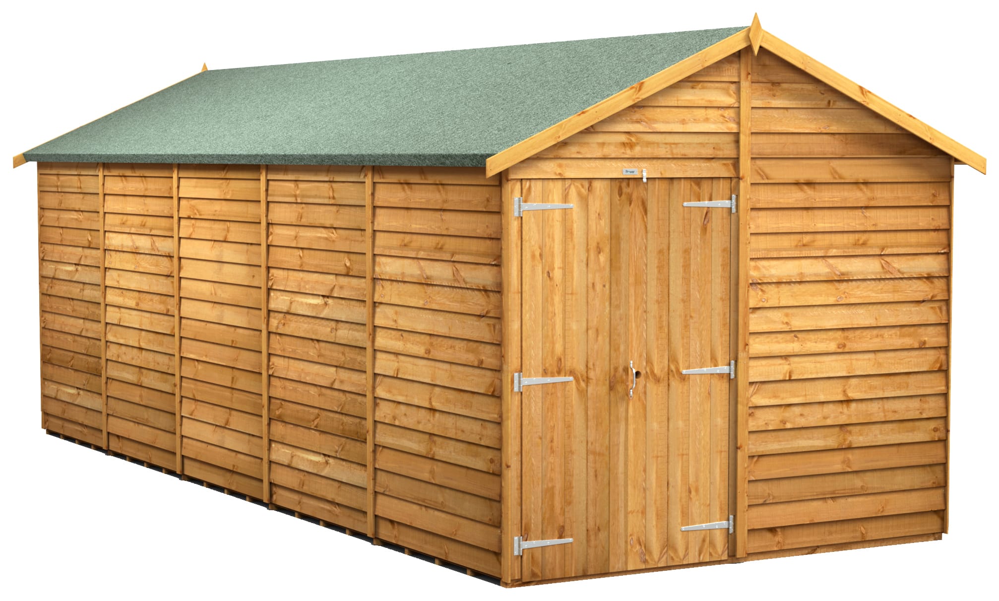 Powersheds Double Door Apex Overlap Dip Treated Windowless Shed - 20 x 8ft