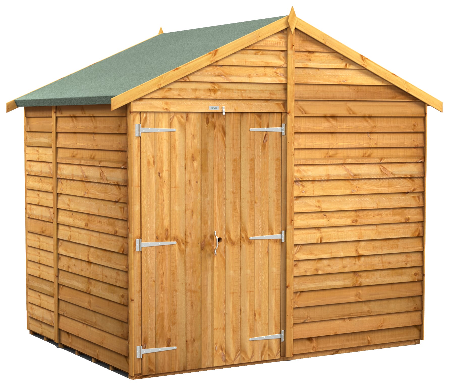 Powersheds Double Door Apex Overlap Dip Treated Windowless Shed - 6 x 8ft