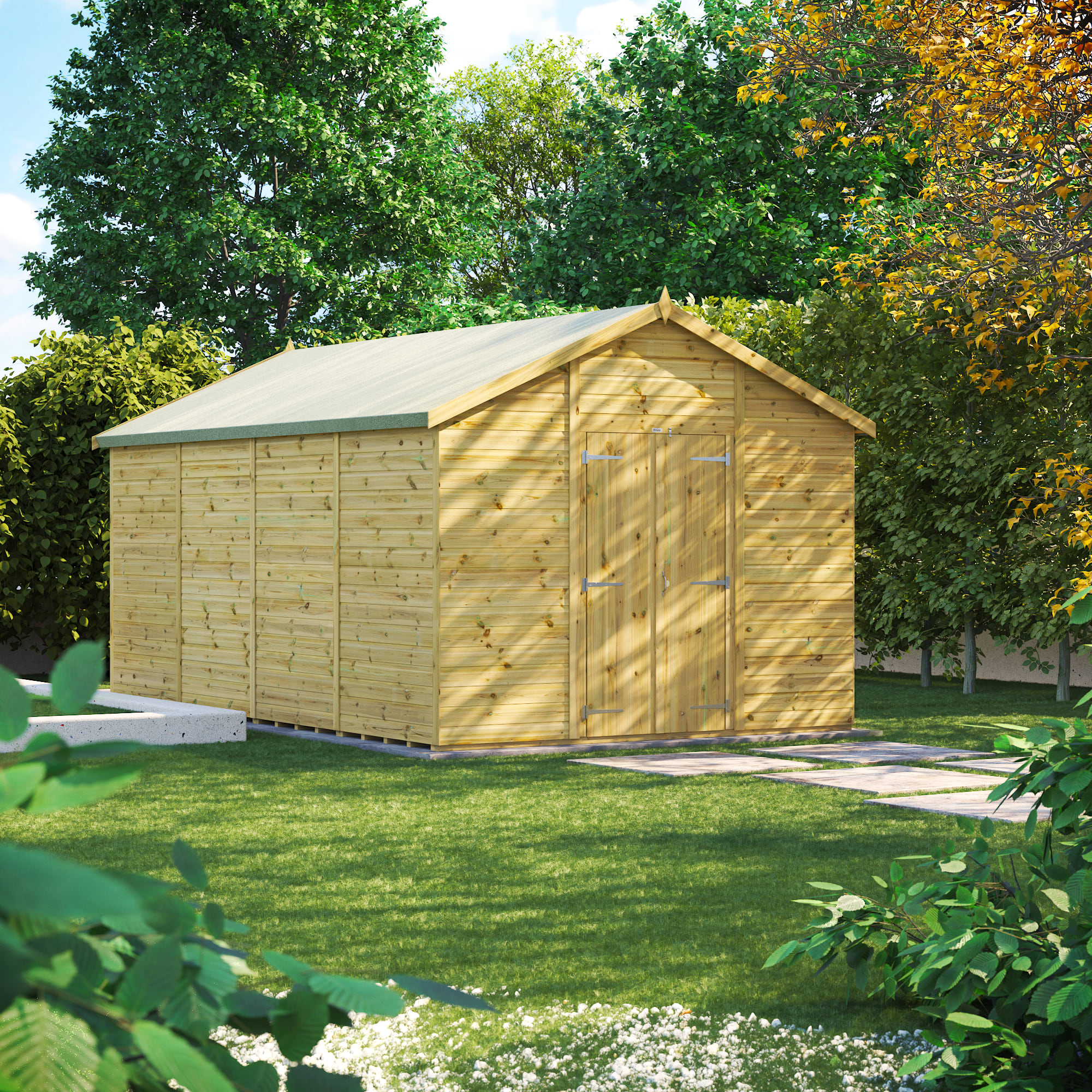 Powersheds Premium Apex Double Door Pressure Treated Windowless Shed - 16 x 10ft
