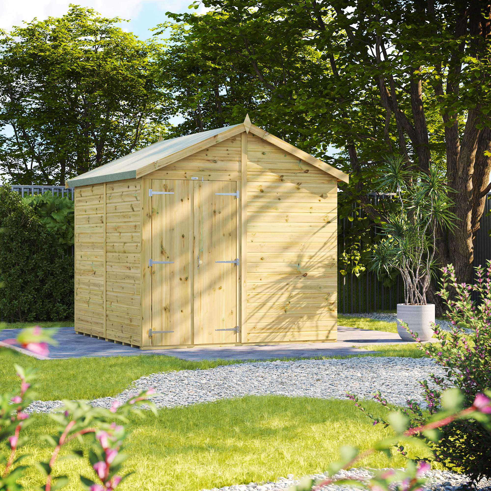 Powersheds Premium Apex Double Door Pressure Treated Windowless Shed - 8 x 8ft