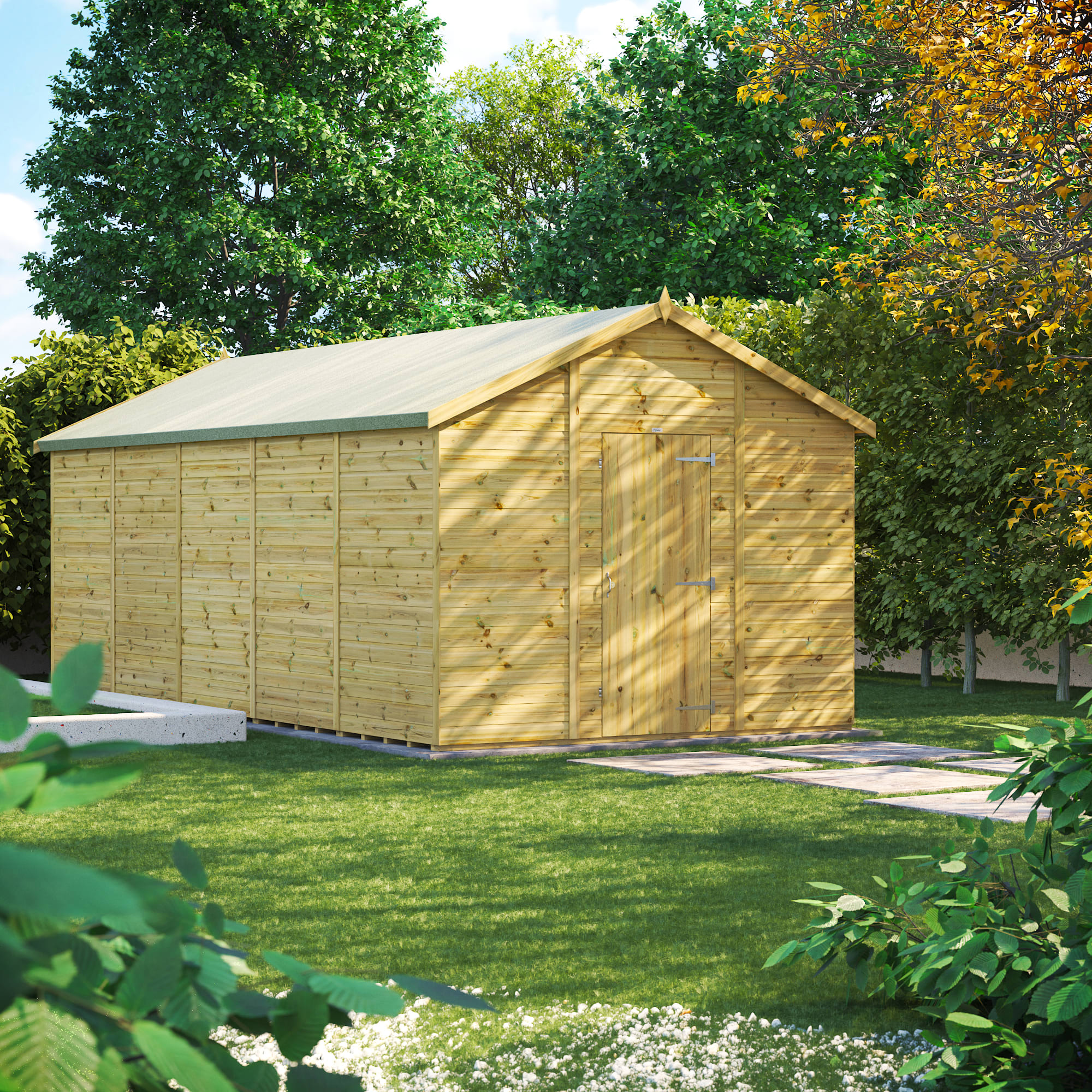 Powersheds Premium Apex Pressure Treated Windowless Shed - 20 x 10ft