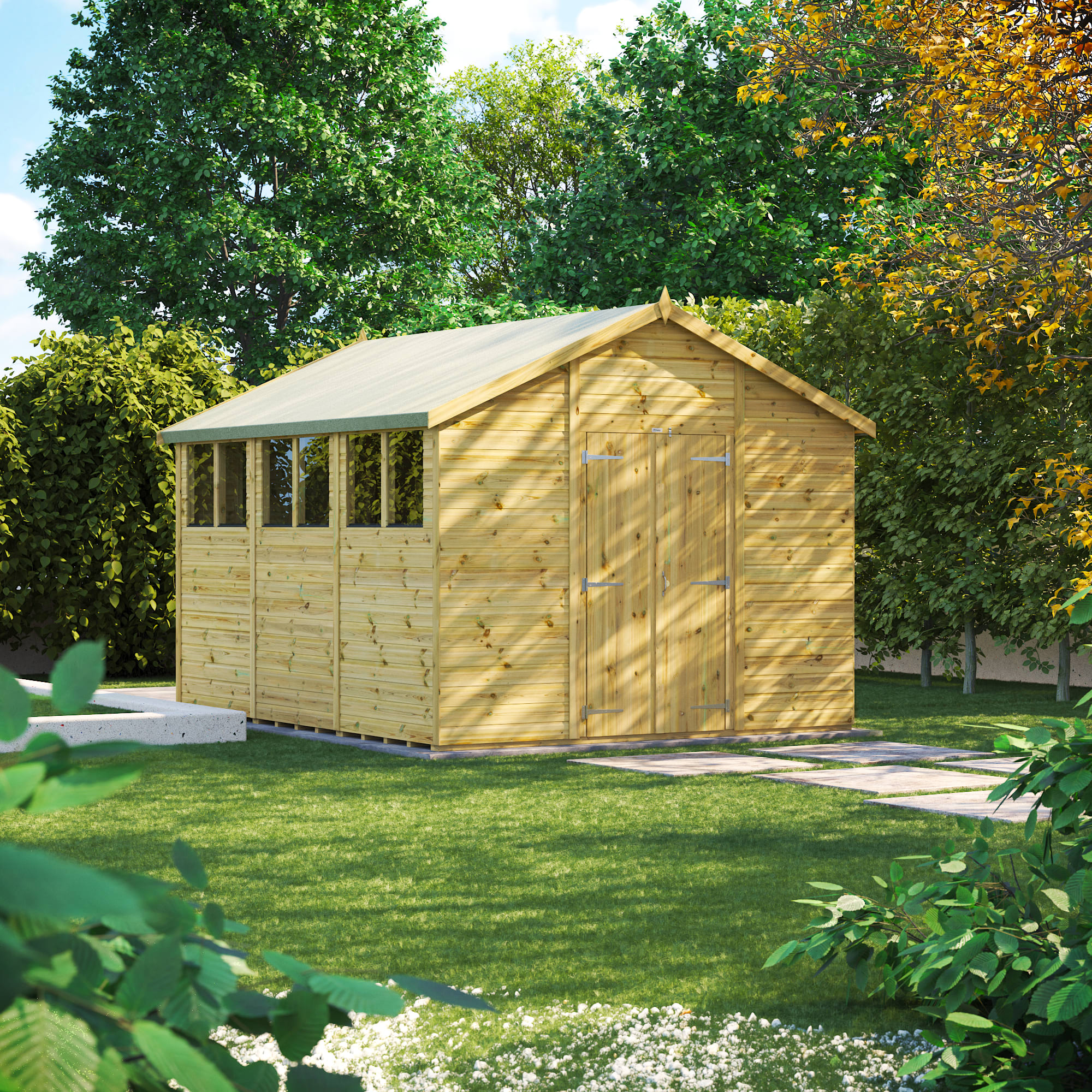 Powersheds Premium Double Door Apex Pressure Treated Shed - 12 x 10ft