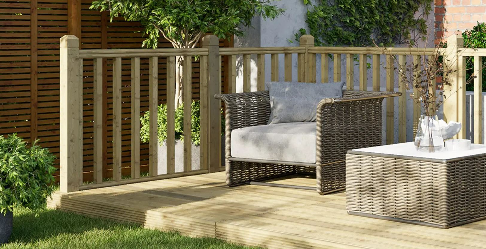 - Kiln dried, slow grown, Scandinavian balustrade with pressure treated spindles. Handrails are pre-assembled to make assembly as easy as possible.