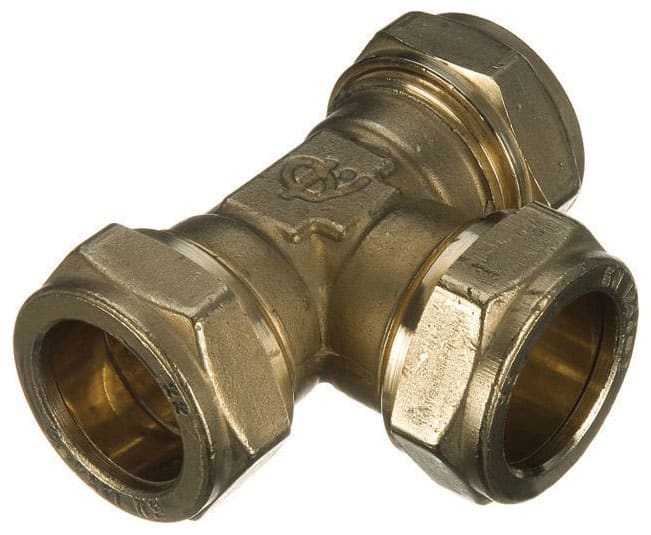 - Equal tee compression fittings used to join three of the same 22mm pipes together in a T-shape