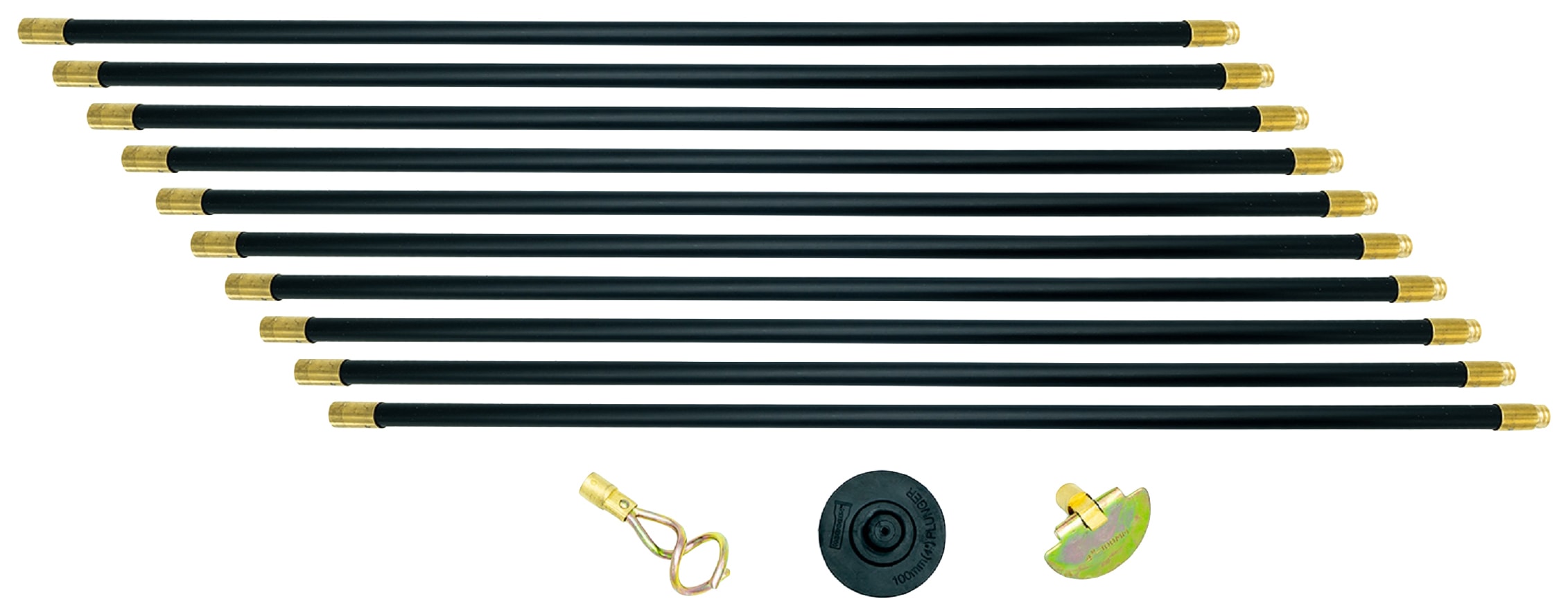 - Includes 10 x 3ft Drain Rods, 1 x Worm Screw, 1 x Drop Scraper & 1 x Plunger