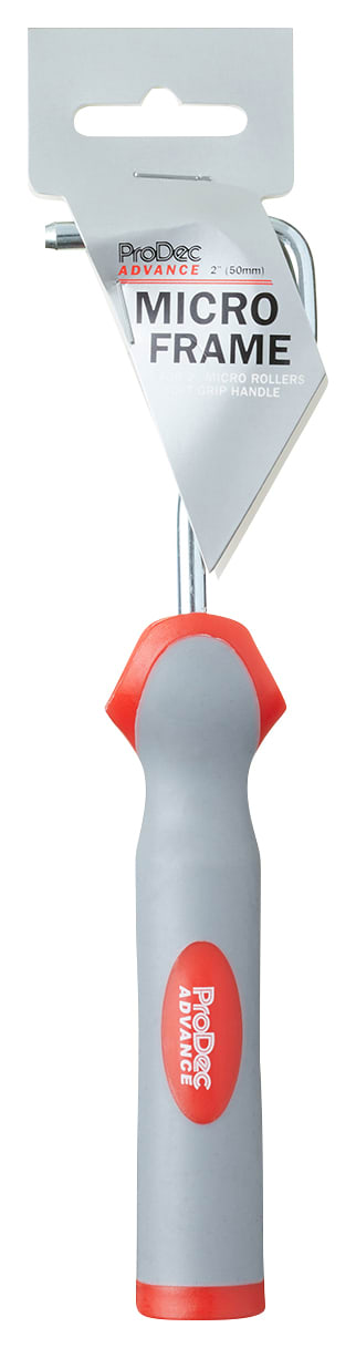 The ProDec Advance Micro Roller Frame is compatible with all 2" micro rollers. The handle features a soft grip for comfort while painting. The frame also has an adapter at the base that attaches to push fit poles for longer reach.