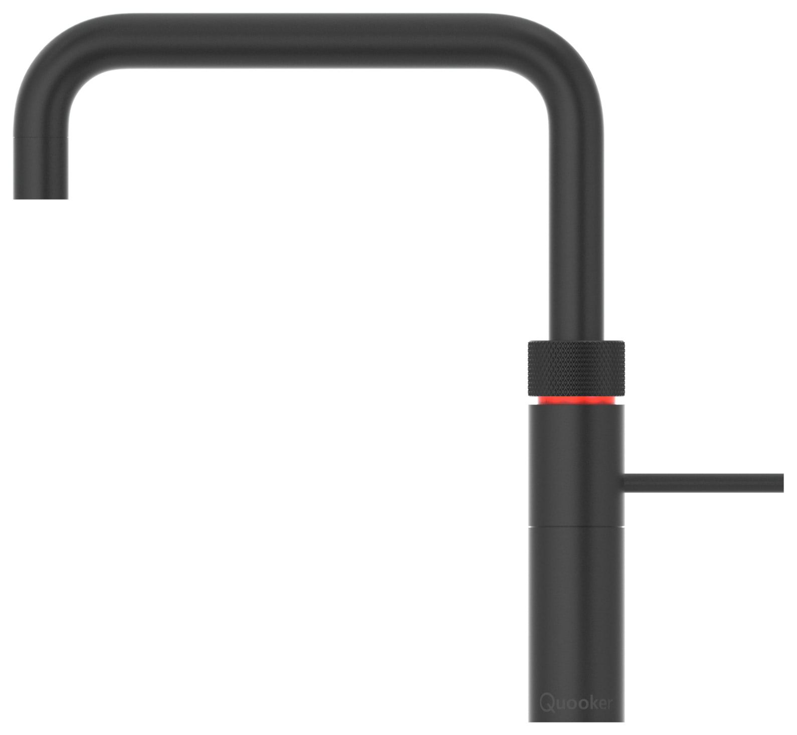 Quooker Fusion 3-in-1 Square Neck Kitchen Tap dispenses hot, cold and 100°C boiling water all from a single, elegant, insulated square spout. This stunning tap is finished in black and has a childproof handle. Featuring a red light ring that illuminates around the handle to indicate when the boiling water is in use.