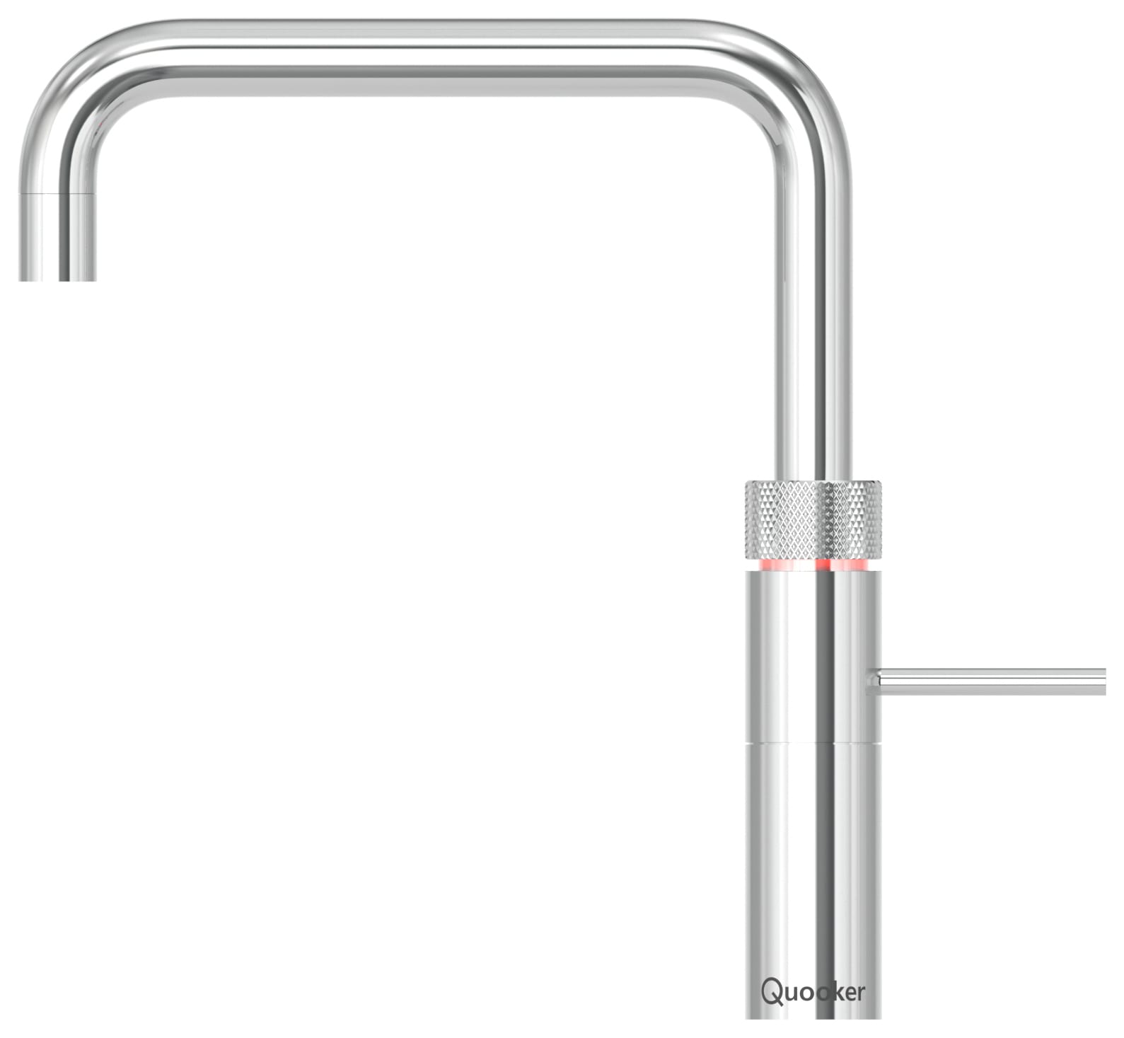 Quooker Fusion 3-in-1 Square Neck Kitchen Tap dispenses hot, cold and 100°C boiling water all from a single, elegant, insulated square spout. This stunning tap is finished in chrome and has a childproof handle. Featuring a red light ring that illuminates around the handle to indicate when the boiling water is in use.