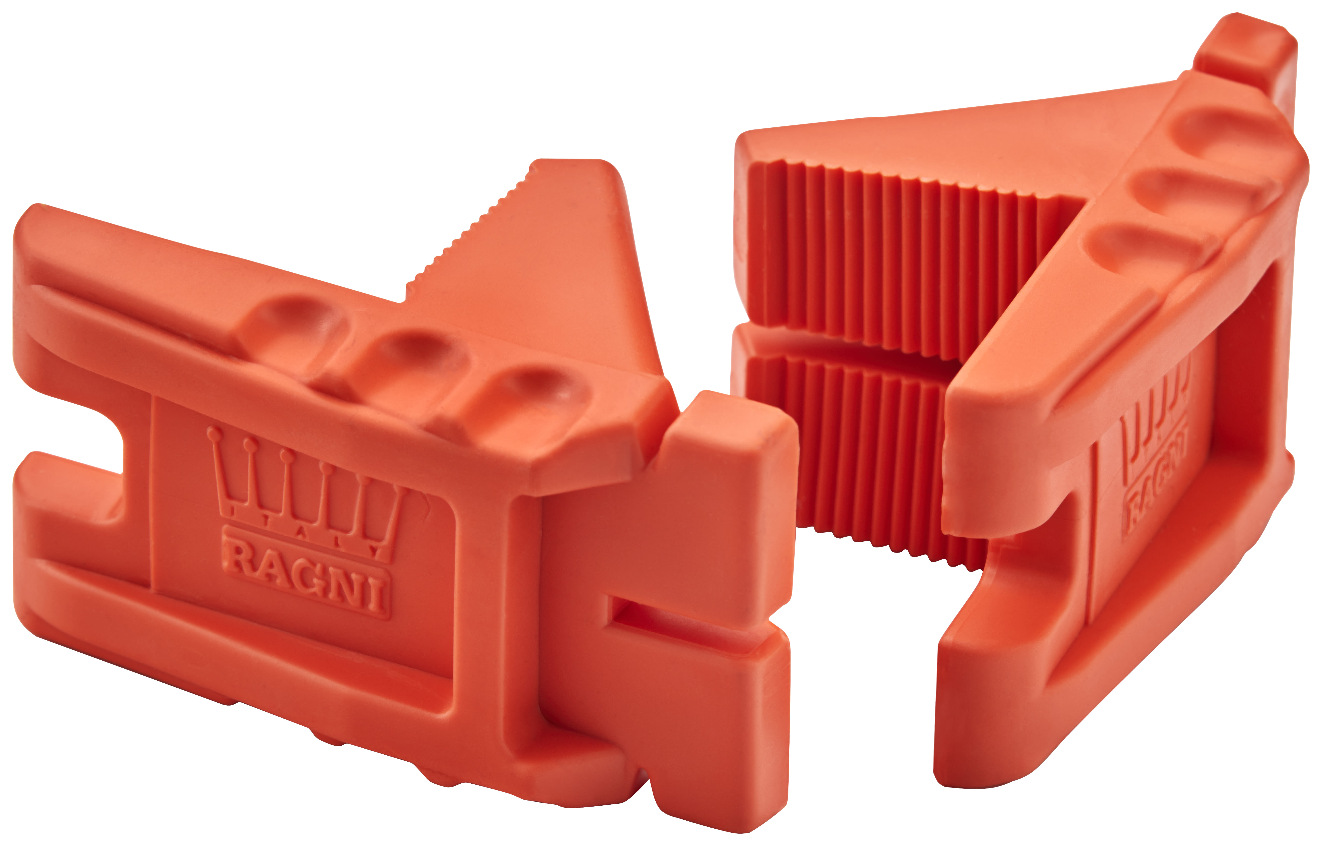 The Ragni Rubberised Bricklaying Corner blocks in orange are a pair of strong, sturdy corner blocks with non-slip, cling-on teeth to keep in place. Consistency line for fast, accurate line-levelling, even around corners. Large surface area and hold-fast grip. They are made from a rubberised plastic construction.