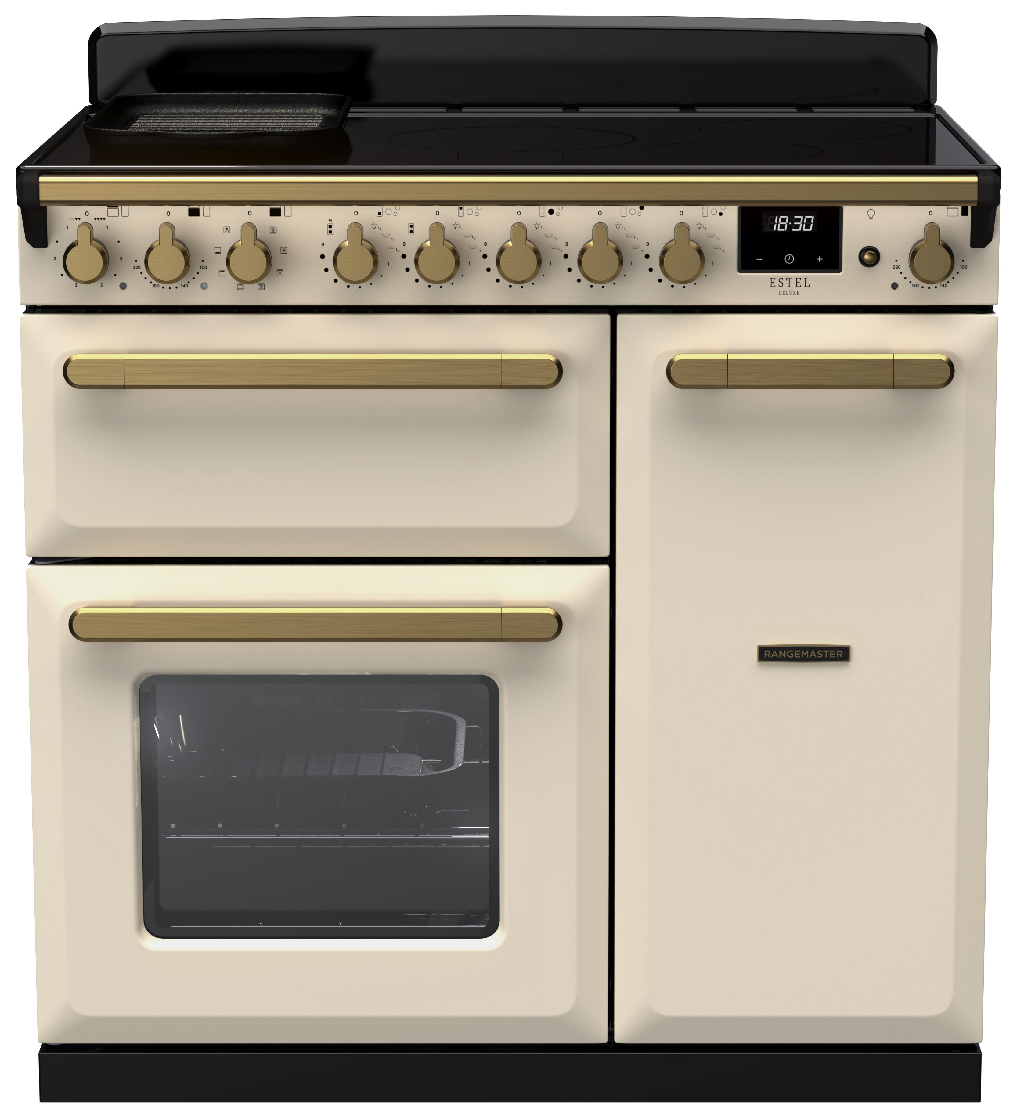 Rangemaster Estel Deluxe 90cm Induction Rangecooker - Pale Cream + Brass